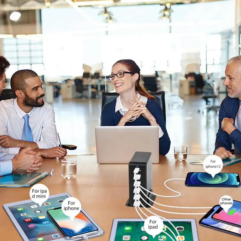 Pd 20W Qc3.0 Protocolo dual Carga rápida Portátil Ignífugo Pc Materia Filtro de CA de alto voltaje Carga rápida Cargador de 6 puertos 65W