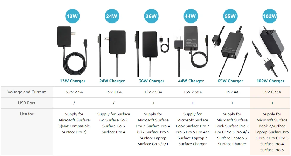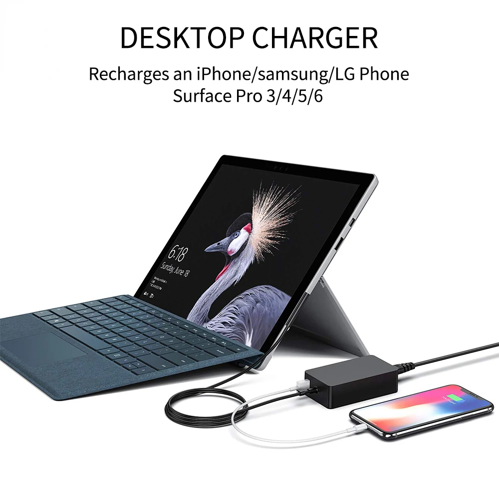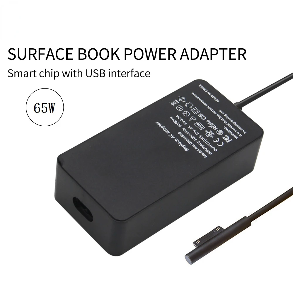 Funciona para Microsoft surface book/ pro3/ pro4/pro5/ pro6/ pro7 adaptador de corriente 1706 cargador con puerto de carga USB de 5V 1A para teléfono (compatible con 15V 2.58A y 15V 1.6A) carga rápida y sistema de protección contra sobrecarga/cortocircuito/protección contra sobrecarga/protección contra sobrecalentamiento