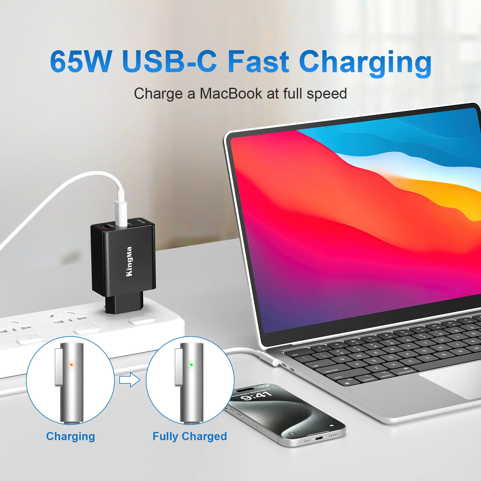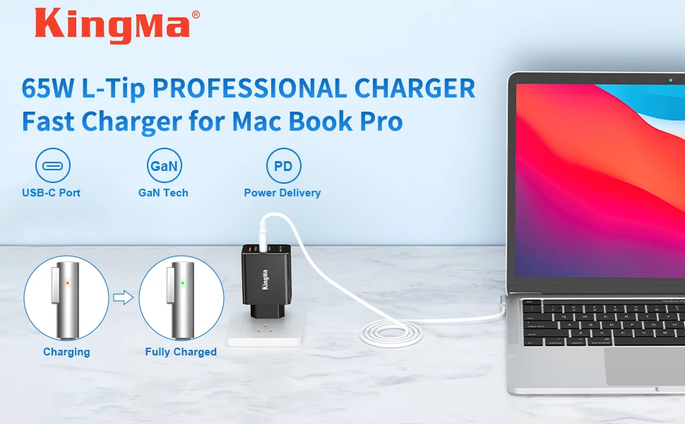 El cargador L-Tip mac pro de 60 W pro pro proporciona de forma inteligente una entrada de corriente constante y tiene una alta eficiencia de carga de hasta el 95 %, nuestro cargador puede cargar completamente la mayoría de las computadoras portátiles en aproximadamente 1 h30 m.
