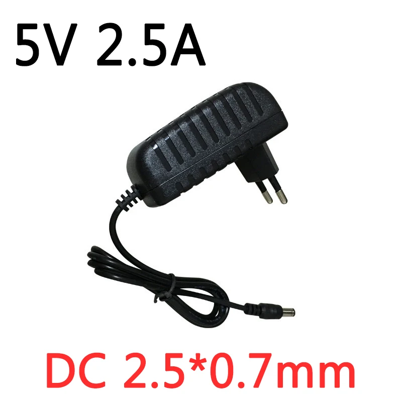 Adaptador de corriente universal, transformador de fuente de alimentación conmutadaLa fuente de alimentación para los requisitos de voltaje para el rango de 4,8 V-5,2 V, la demanda de corriente dentro del dispositivo 2a o 2aAlimentación de CC aplicada a las necesidades eléctricas Placa DE DESARROLLO 5v2a, disco duro extraíble, etc.El voltaje de la fuente de alimentación es adecuado para todo tipo de necesidades 5V 2A o 2A productos de entrada de CC por debajo de la corriente, ¡no se puede sobrecargar para usar!Atención selectiva de potencia, debe seguir para seleccionar que la corriente eléctrica constante de voltaje sea igual o superior a la fuente de alimentación de corriente requeridaVoltaje de entrada (ENTRADA): 100-240V 50-60HzEl voltaje de salida (SALIDA): DC 5V-2.5APotencia (potencia máxima de salida): 12,5 WTotal: si las siguientes imágenes tienen una longitud de mapa físico de 1mPolaridad: positivo interno, negativo externo.Enchufe DC: 2,5*0,7 MM