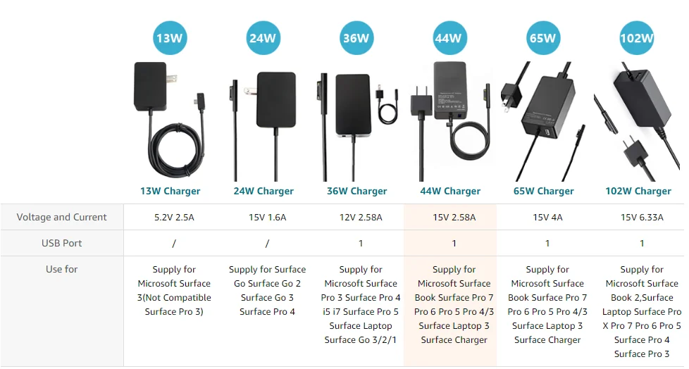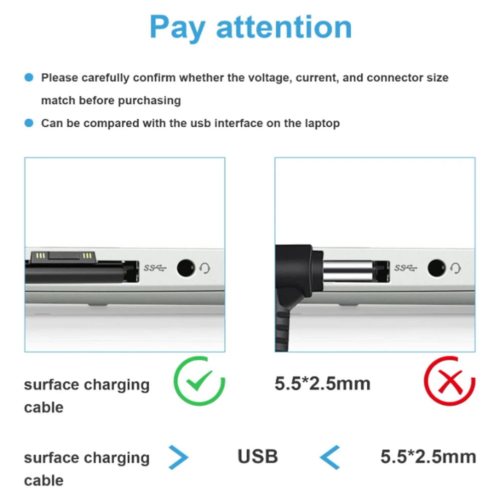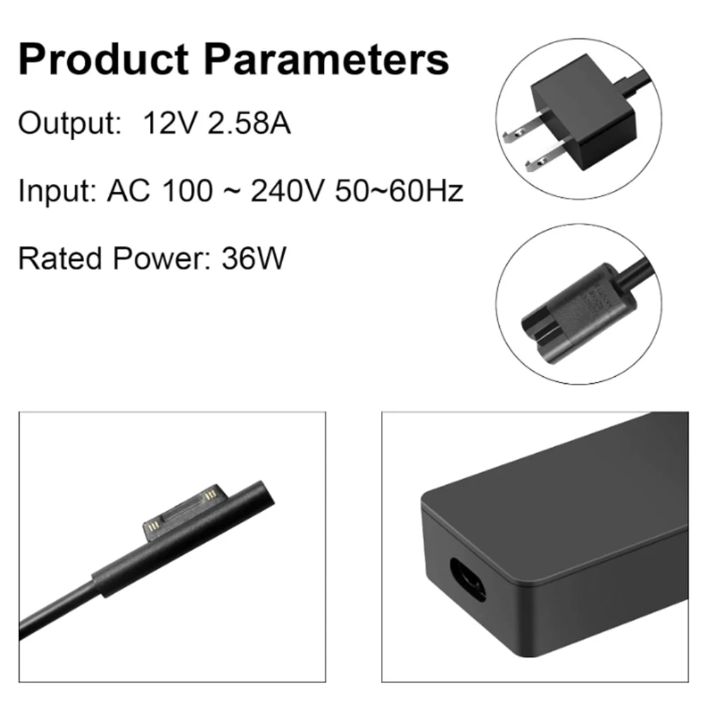 Compatibilidad con el cargador Surface Pro de 36W: diseñado para adaptarse a tu Microsoft Surface Pro 3 Surface Pro 4 i5 i7 Surface Pro 5 y Surface Laptop Surface Go 3/2/1.