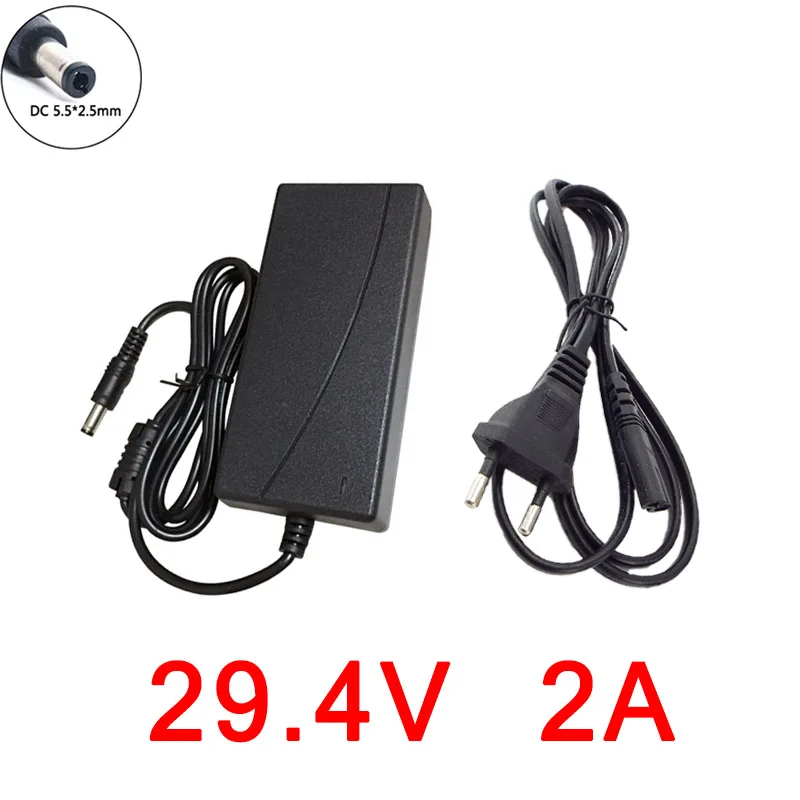 Cargador adaptador de corriente DC 29,4 V 2A para cable de patinete Hoverboard autoequilibrado de 24V para cargador de batería de litio de iones de litio serie 7