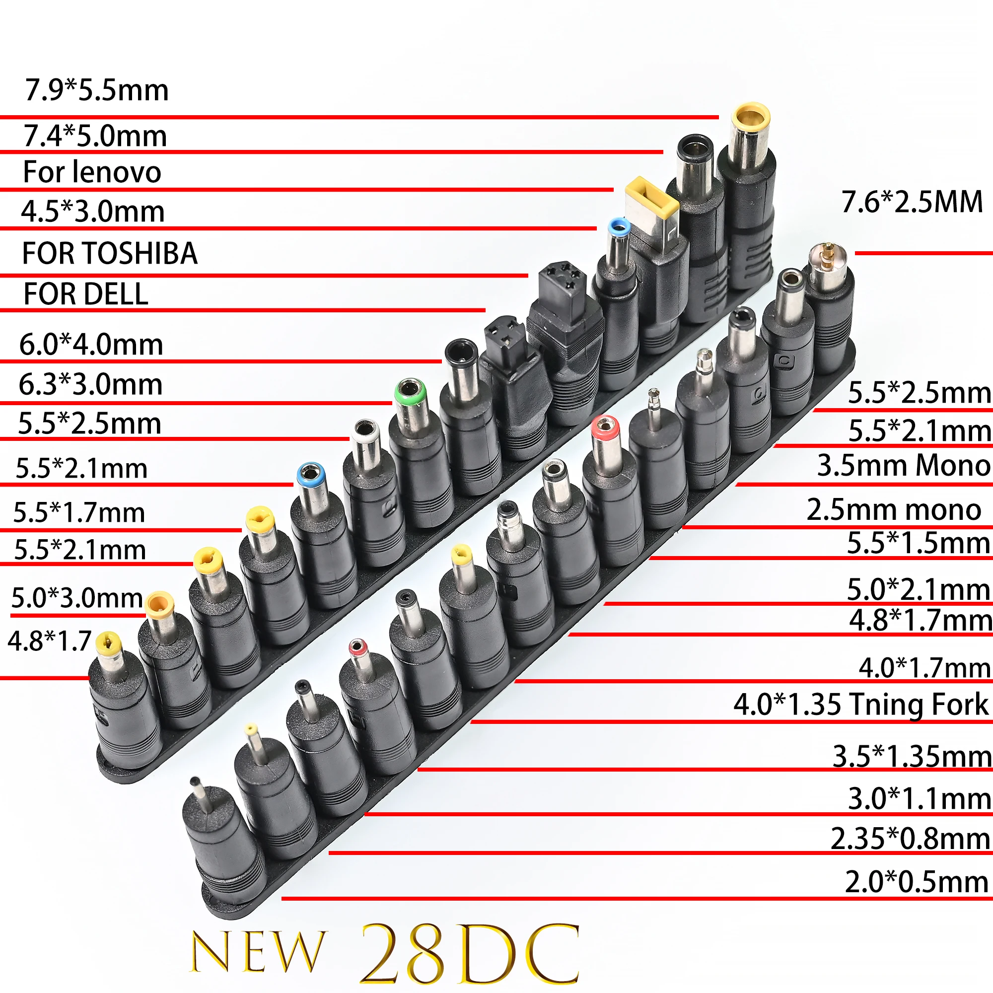 El paquete incluye (carga de 90 W * 1) (28 conectores CC) y los cables que necesita elegir