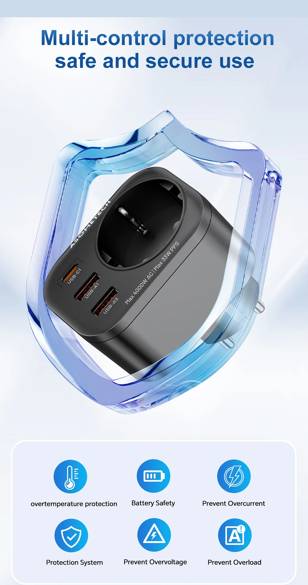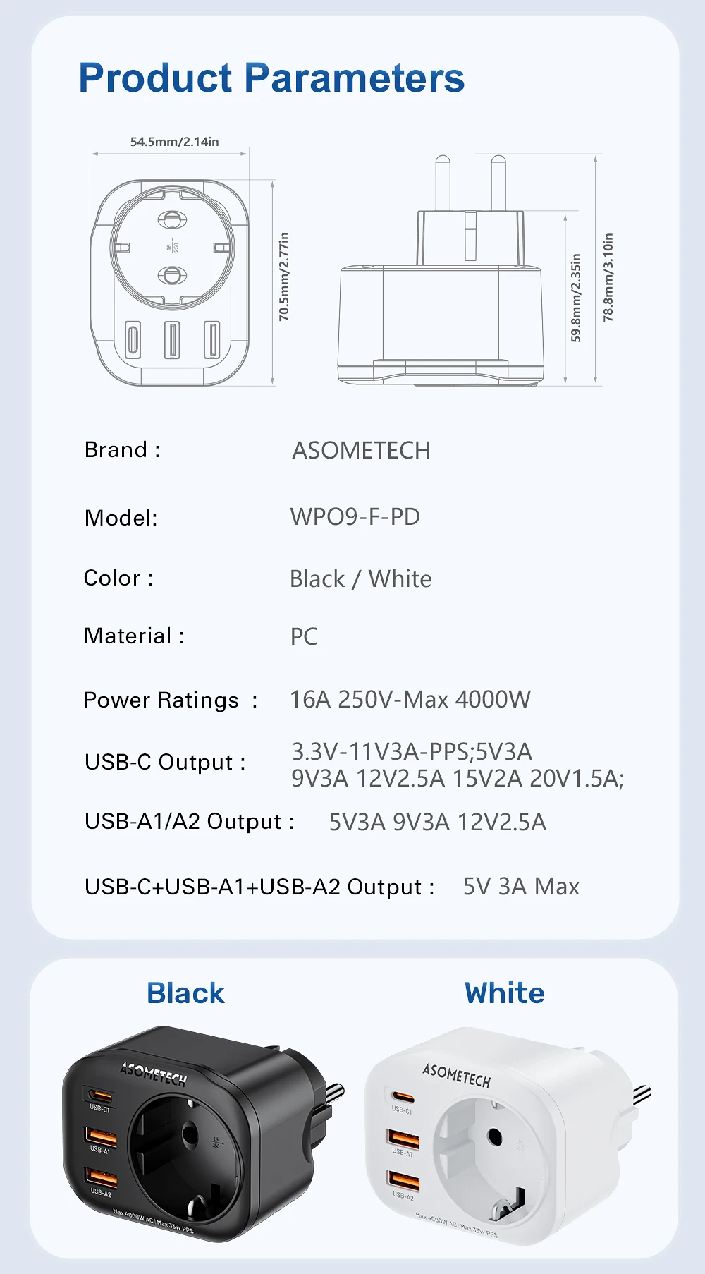 Product Name :ASOMETECH 4000W Power Sockets With 33W USB GaN Charger