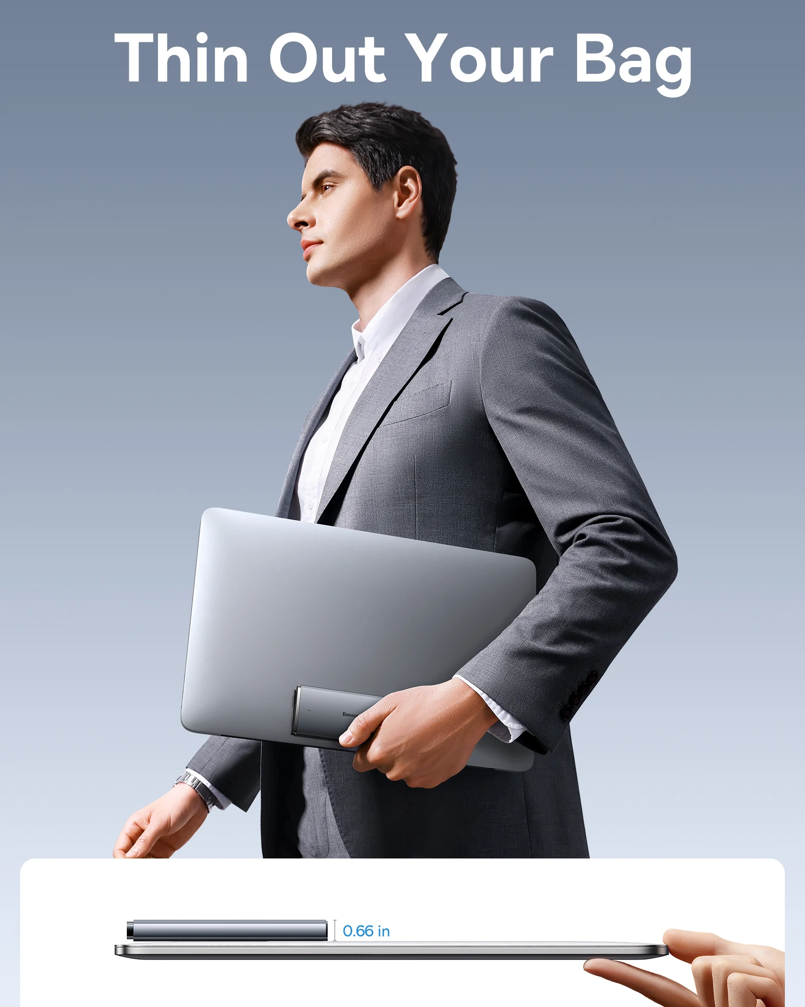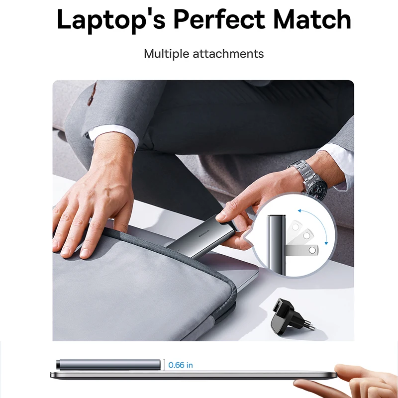 Con equipo con el banco de energía Baseus Blade para un viaje de negocios exprimido