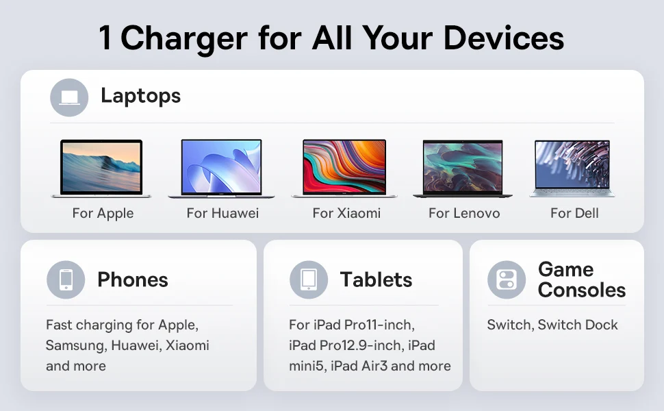 Cargador GaN C+U de 65 W,delgadez reducido 20mm,Perfecto para tu portátil