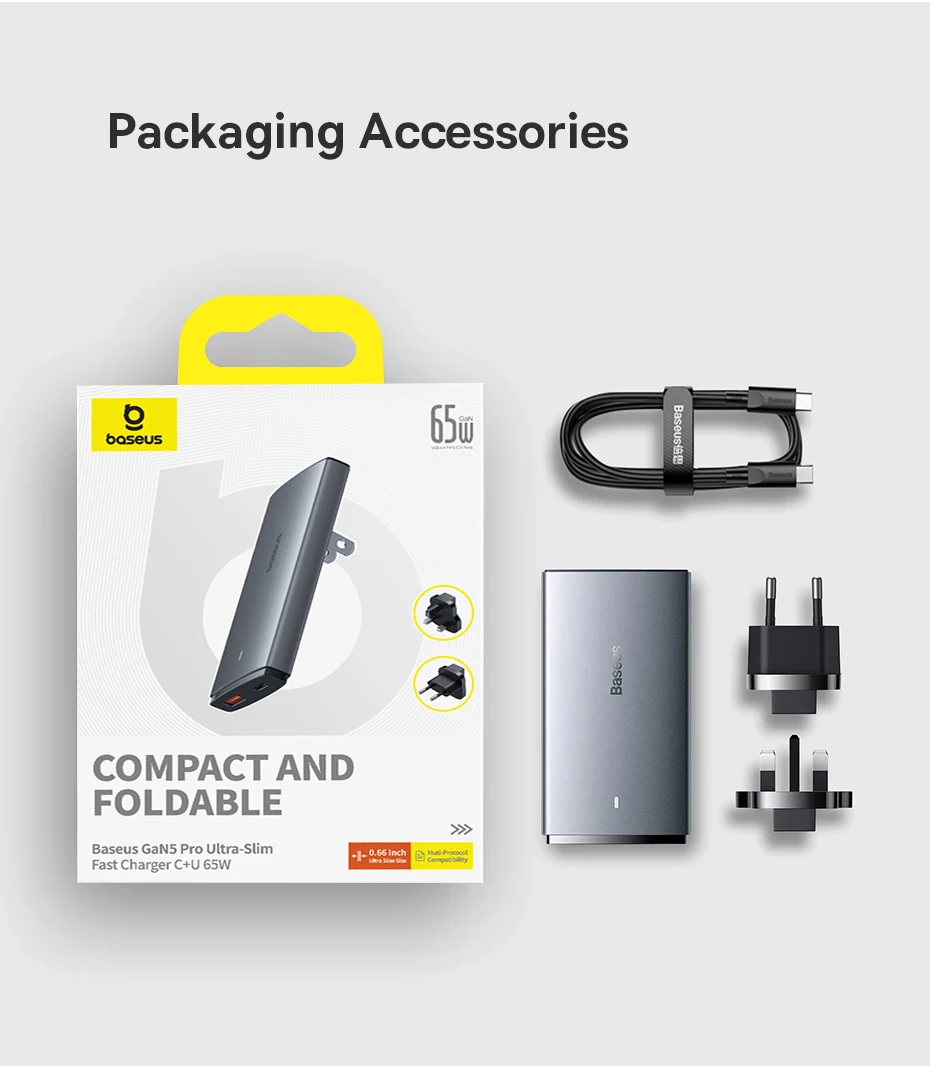Cargador rápido ultradelgado Baseus GaN5 Pro 65W