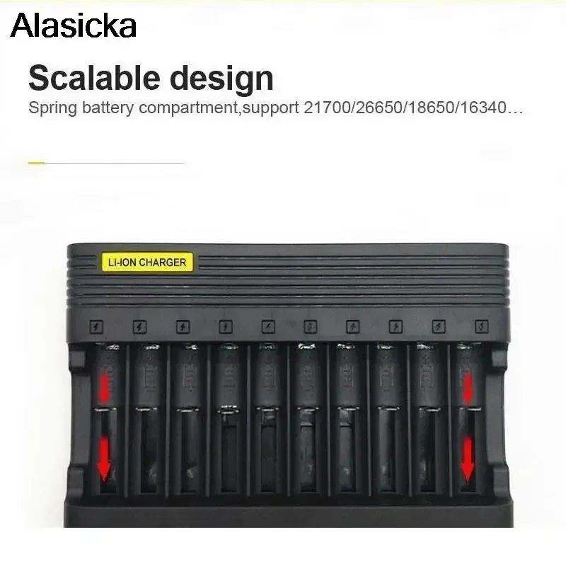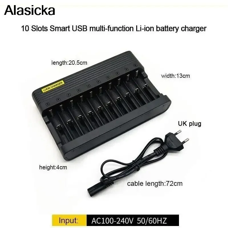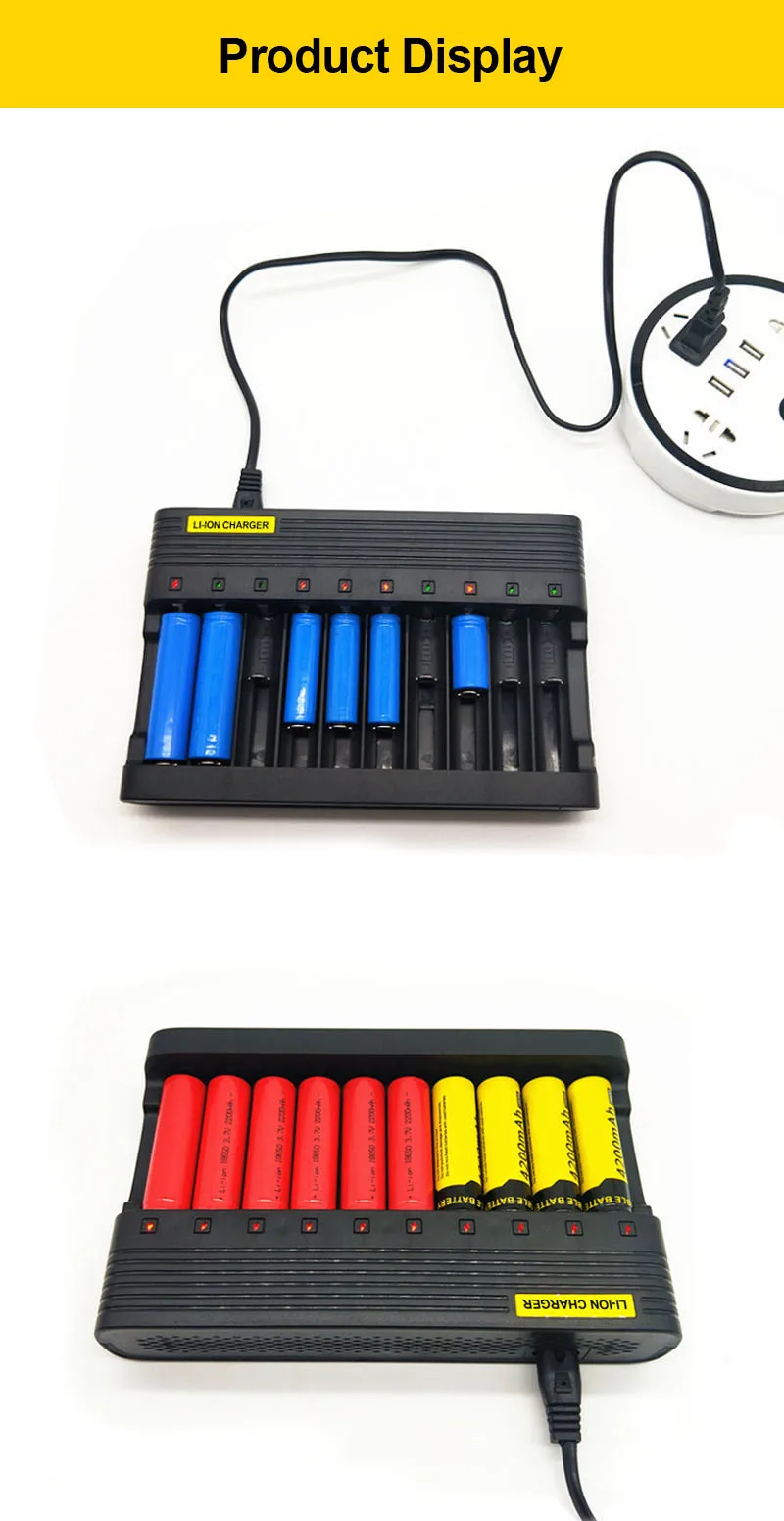 Cargador de batería de iones de litio multifunción Smart USB de 10 ranuras