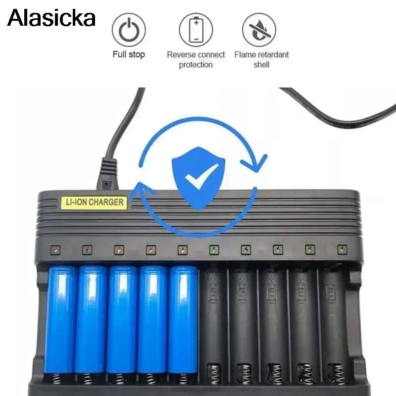 Comprar Cargador de batería 18650 UE 10 ranuras carga de litio inteligente 14500 16350 18500 salida USB cargador de batería recargable de iones de litio