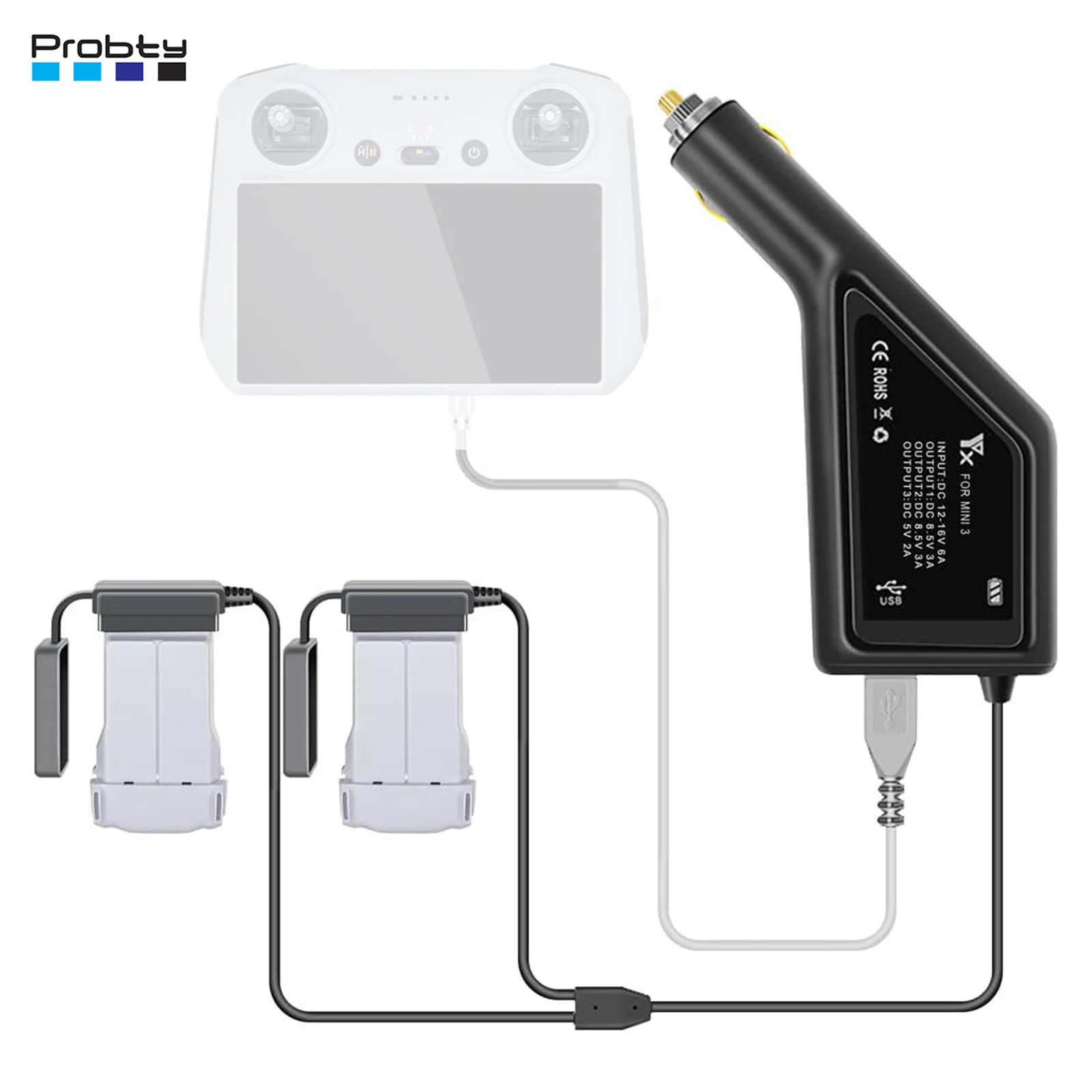 1. Cargador de coche para Dron DJI Mavic Mini 3/3 Pro/4 Pro, Control remoto y carga de batería,