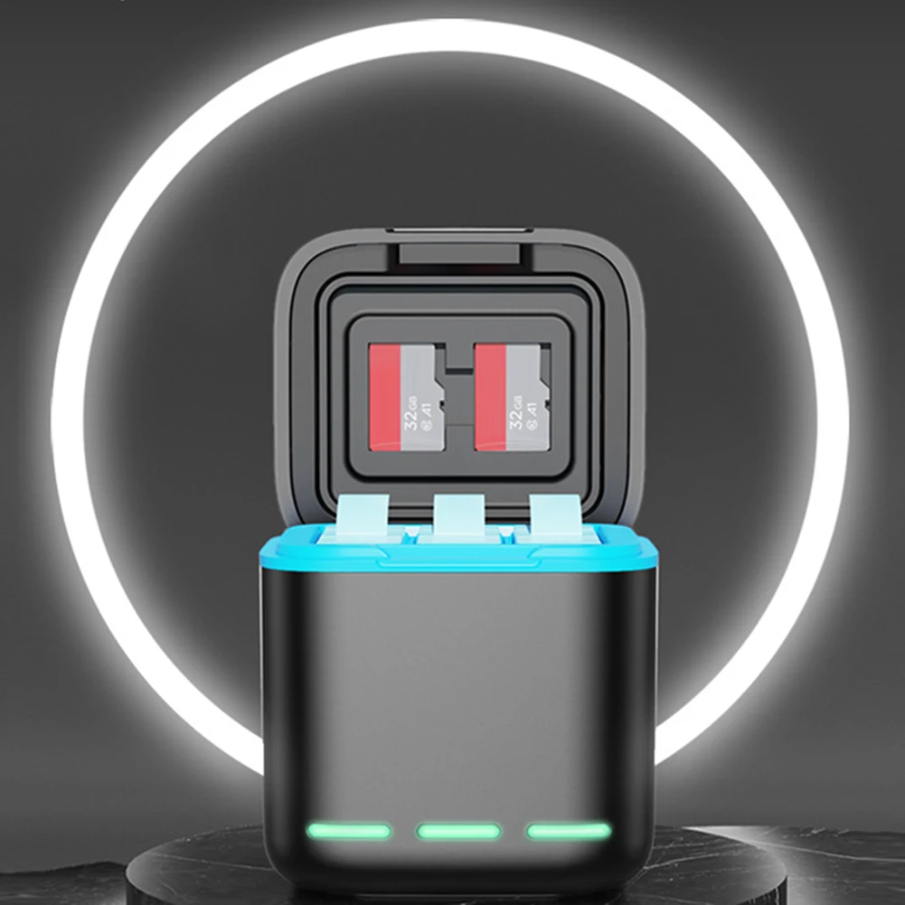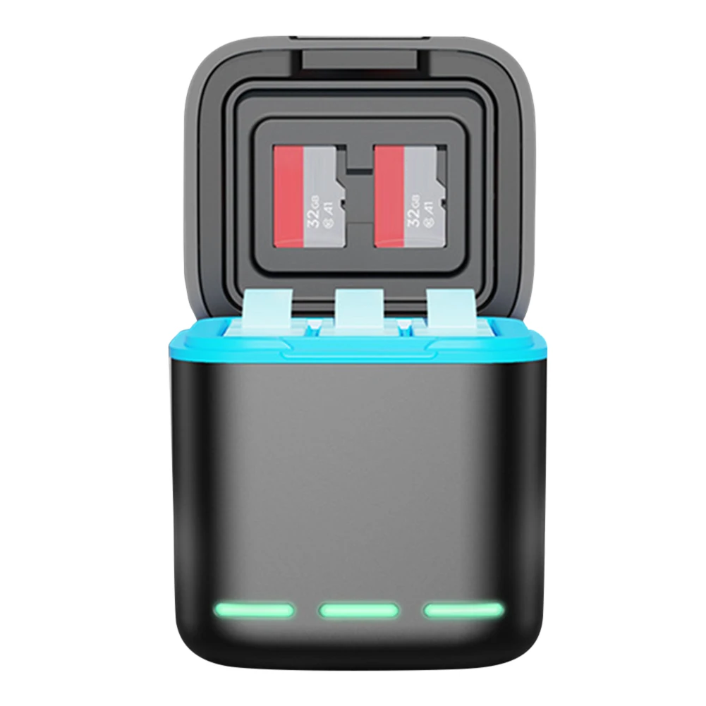 Cargador de batería de 3 canales con cable tipo C Estación de carga de Batería 2 Ranura SD Estuche de almacenamiento de bateríasCompatible conAccesorios para cámara GoPro Go Pro Hero 8 7 6 5