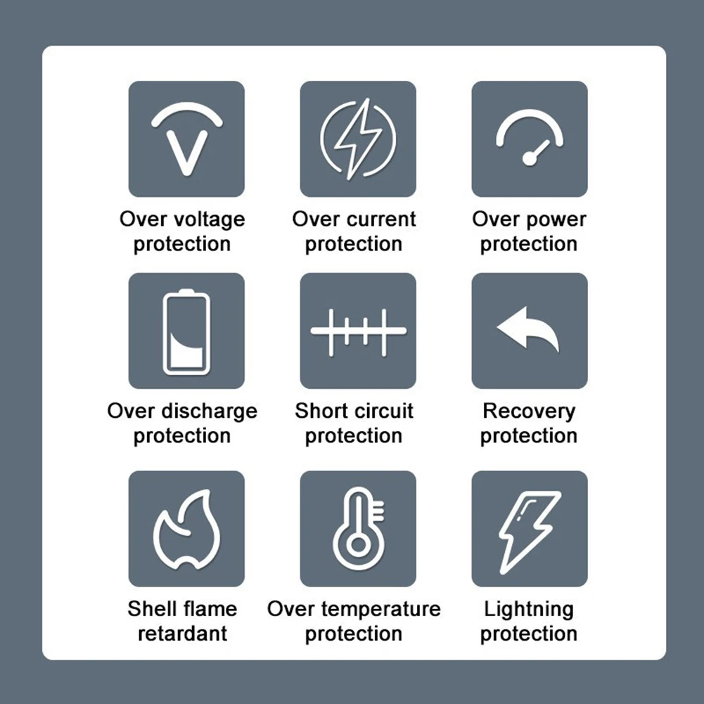 Protección integrada contra sobrecarga, sobretensión, sobrecalentamiento y estructura ignífuga de alta calidad para garantizar su seguridad y la de sus dispositivos.