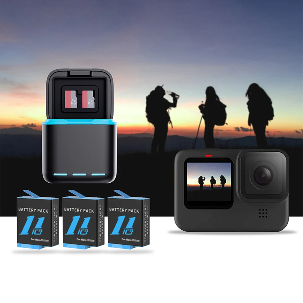 BateríasCompatible conGoPro 12/11/10/9 simultáneamente, lo que le permite cargar las baterías de las cámaras Hero mediante intercambio en caliente, reduciendo así el tiempo de inactividad de GoPro.