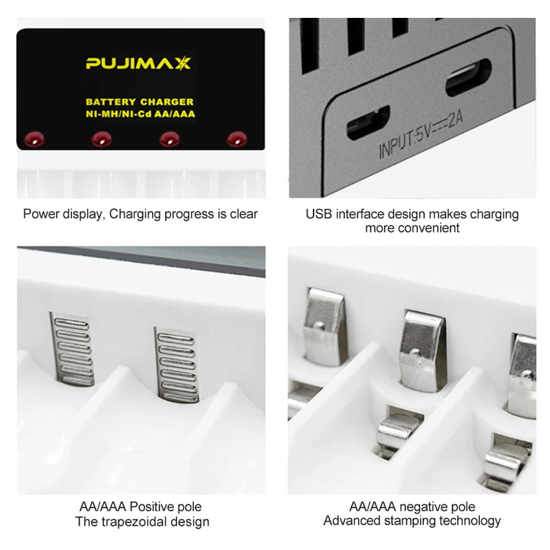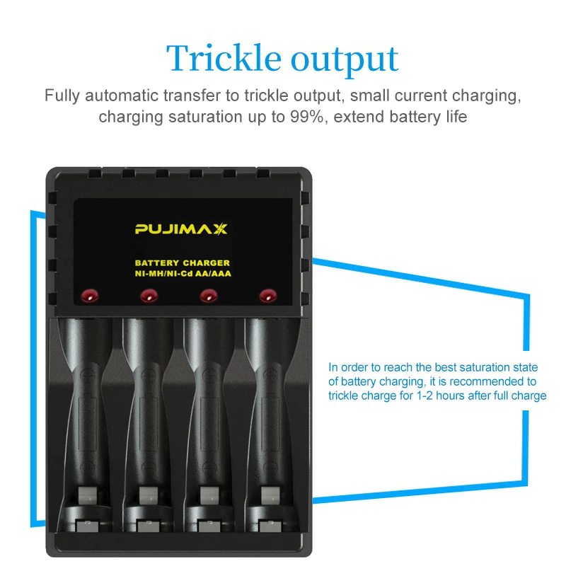 Solo apto para baterías recargables AA/AAANi-MH/Ni-Cd de 1,2 V, no apto para 1,5 V.