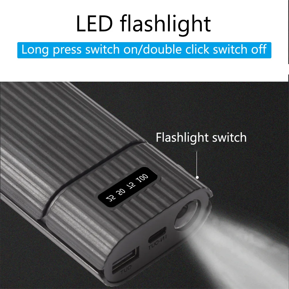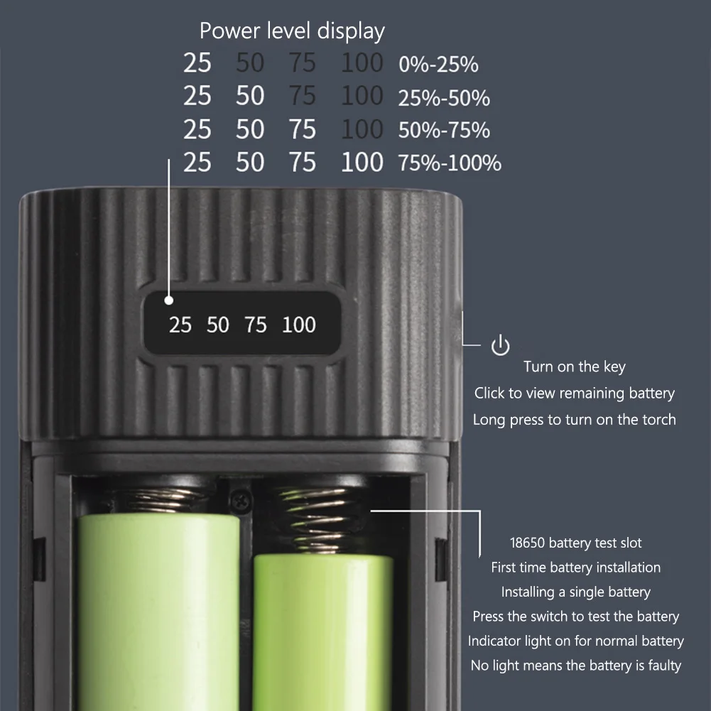 Batería aplicable: 2 baterías recargables integradas 18650/18700/20700/21700 baterías de iones de litio (sin baterías)