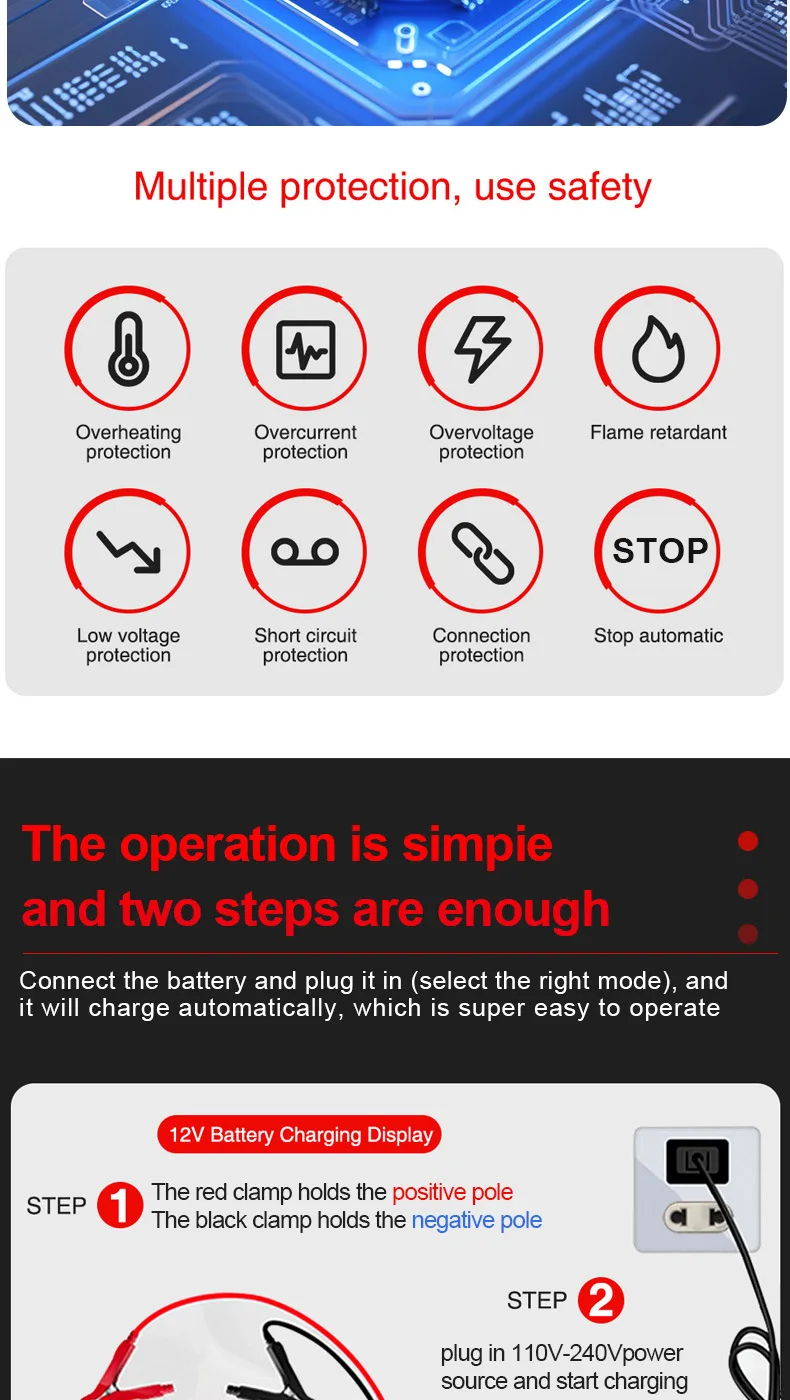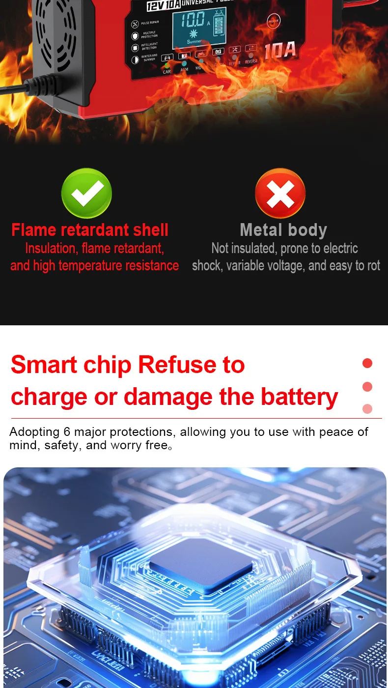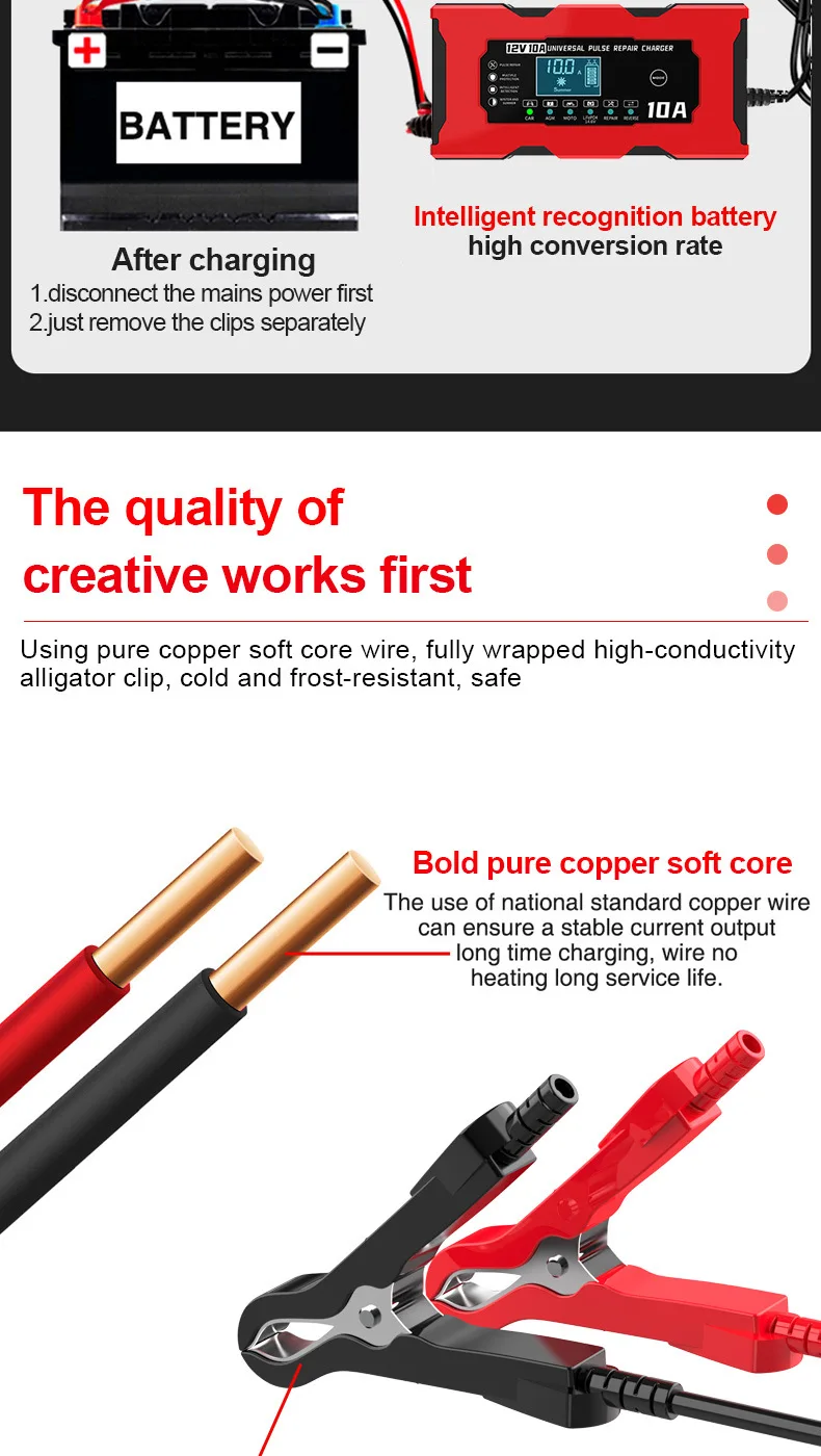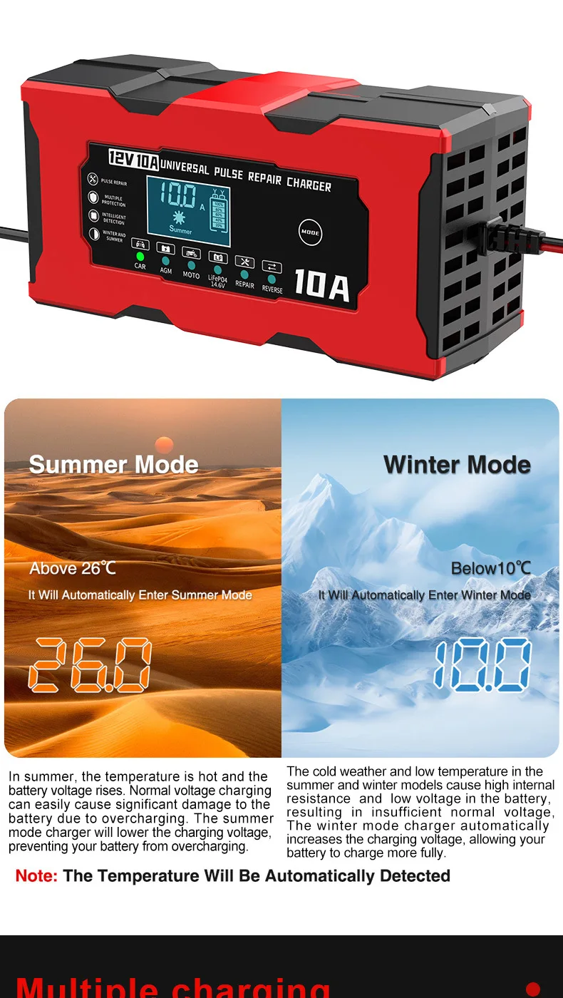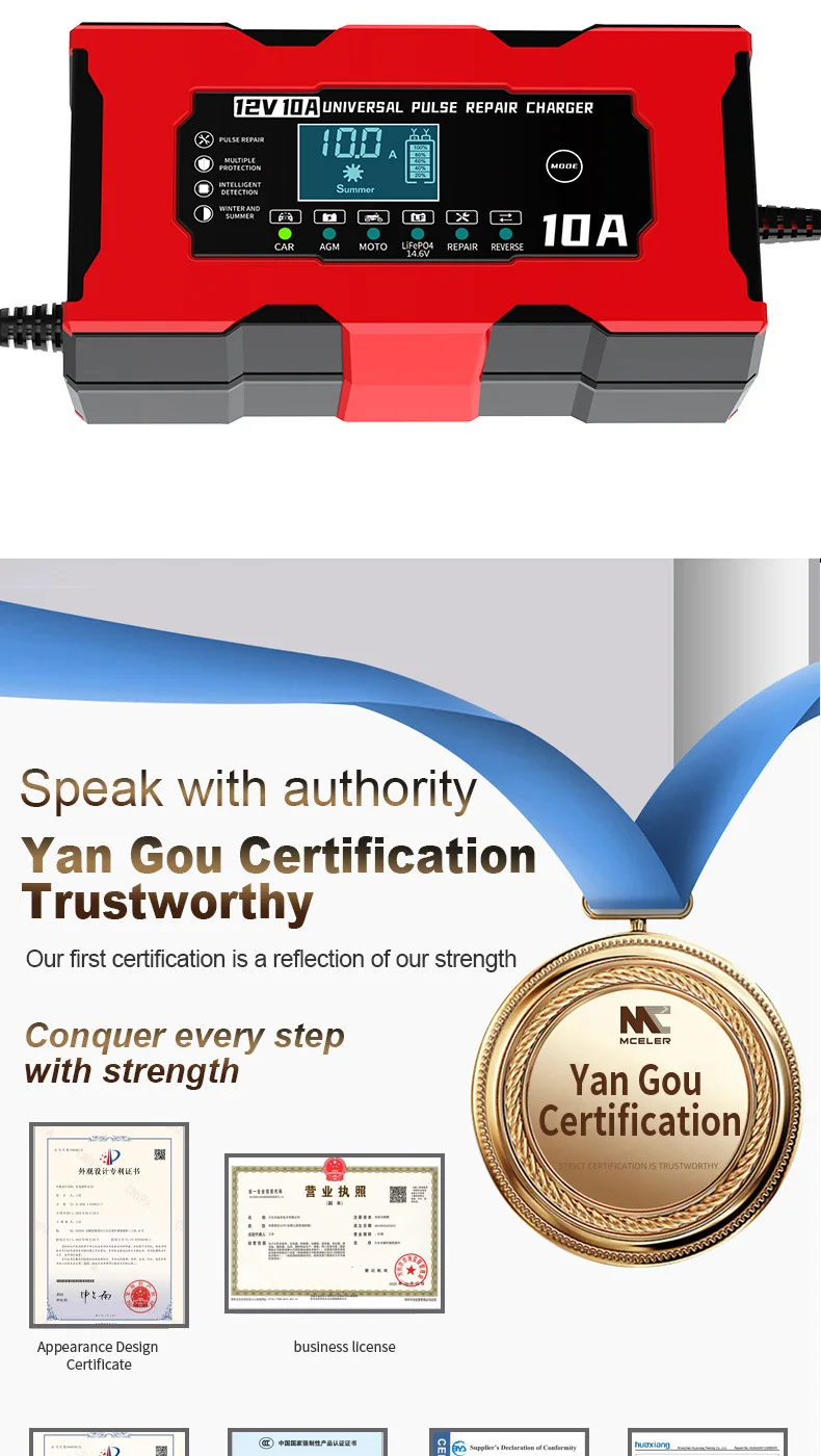 Cargador de batería de coche de 12V 10A, cargador de motocicletas eléctricas de 14,6 V 10A para Lifepo4, plomo ácido AGM GEL PB, reparación de baterías de litio inteligentes