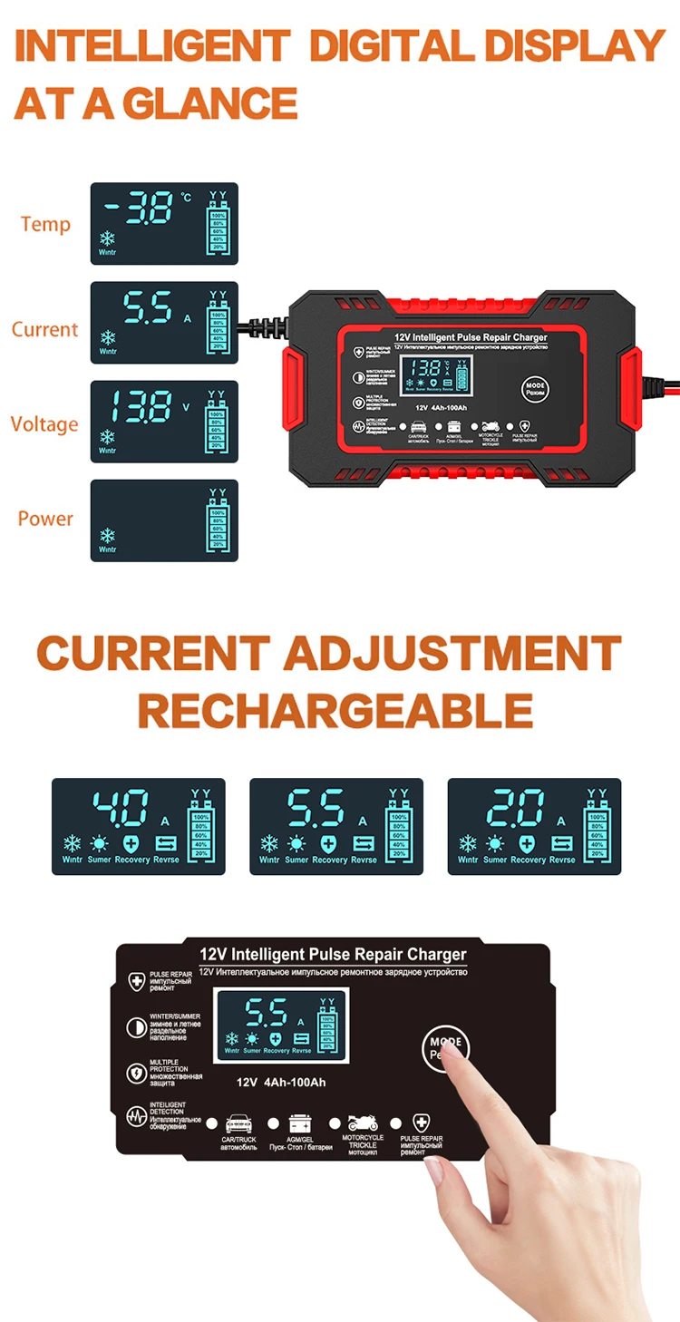 Tipos de baterías: La mayoría de los tipos de baterías de plomo-ácido, incluyendo calcio, y AGM GEL, húmedo, EFB, etc.