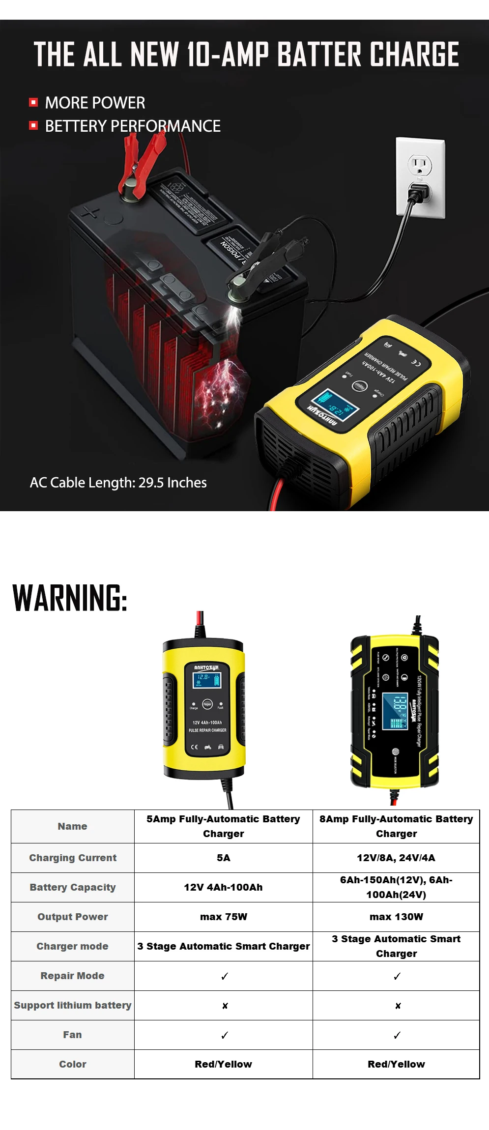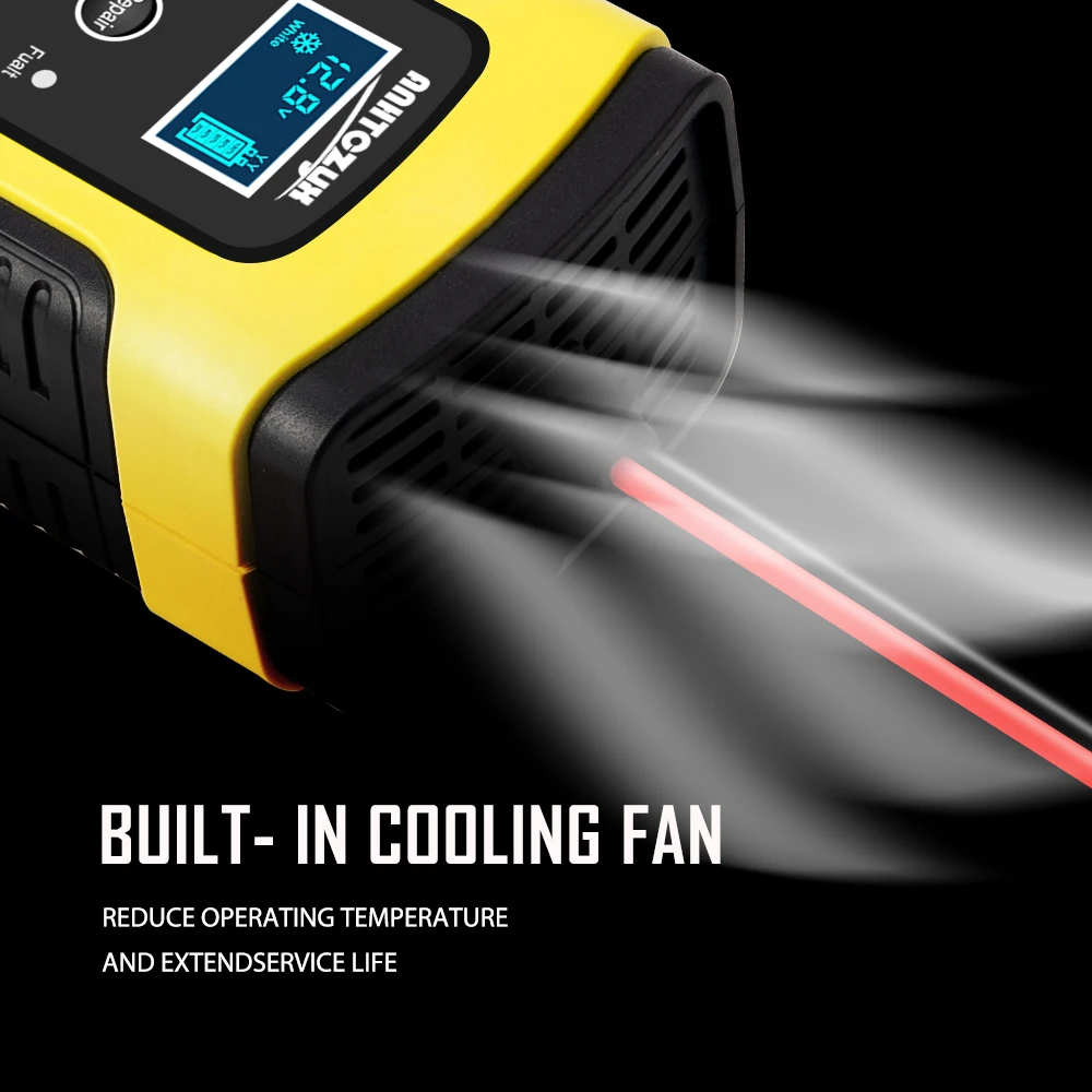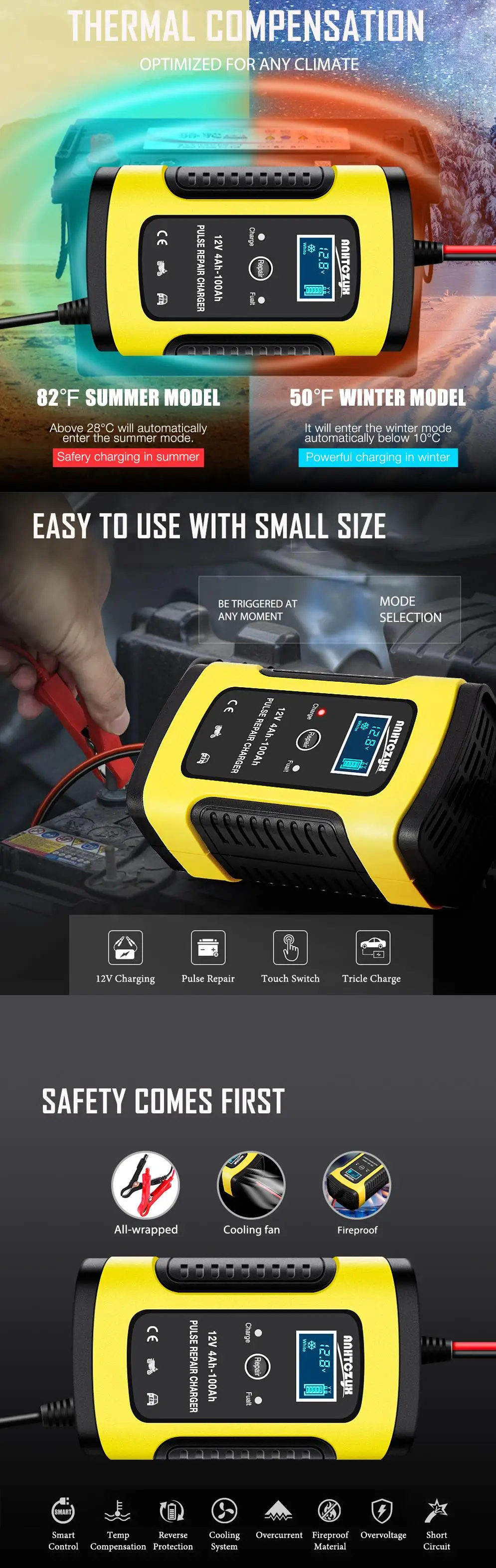 Comprar Cargador de batería de coche completamente automático, cargadores de reparación de pulso de potencia de 12V 6A, cargadores de batería de plomo y ácido seco y húmedo, pantalla LCD Digital