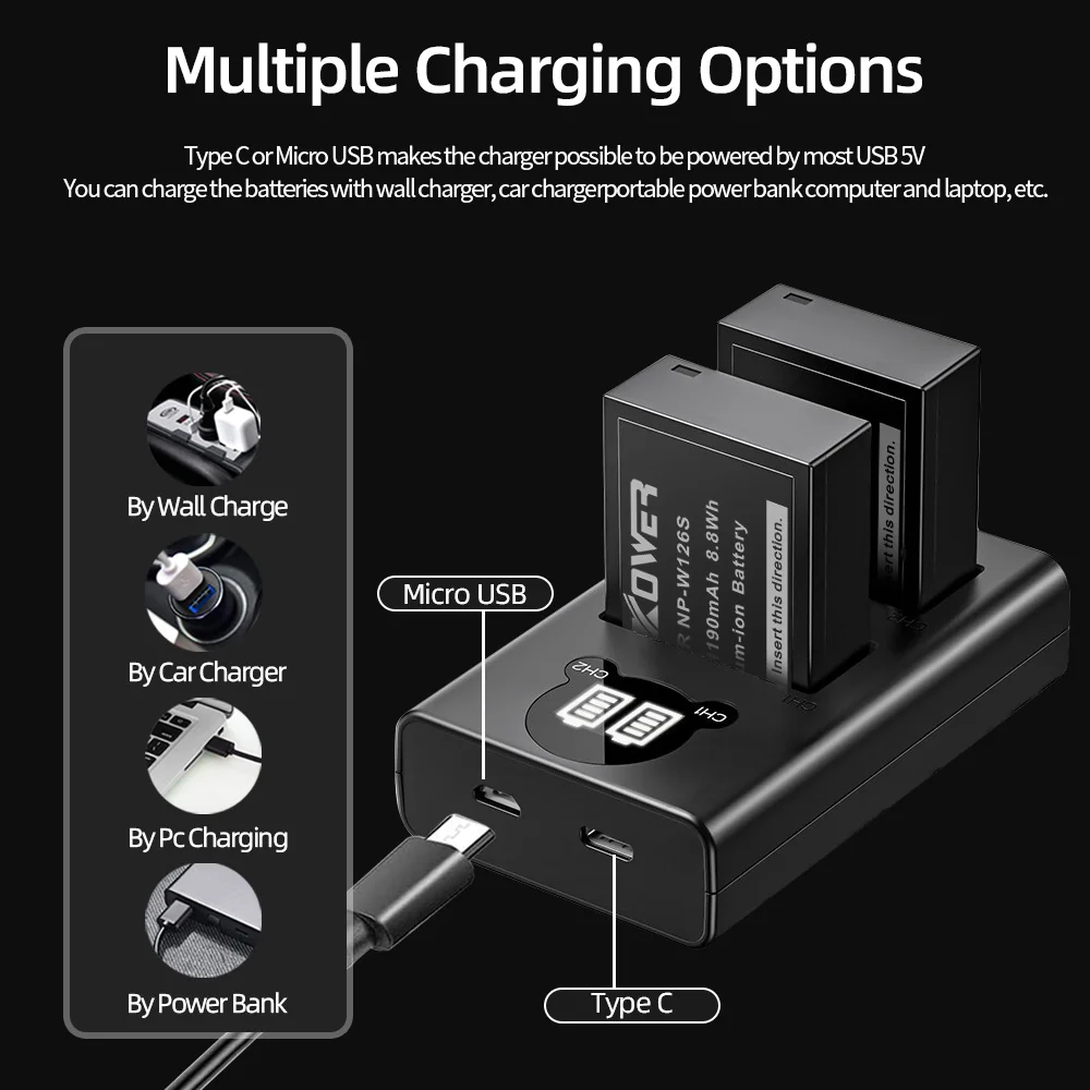 Comprar Cargador de baterÃa Dual NP-W126S para cámara Fuji, NP-W235, X100F, X-T100, X-S10, X-A5, X-E4, X-Pro2, X-T1/5, GFX100S/50S II, X-T10