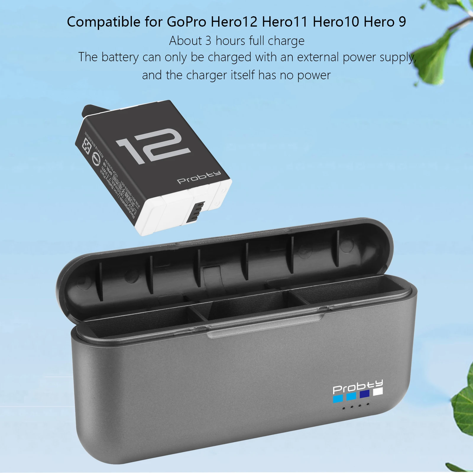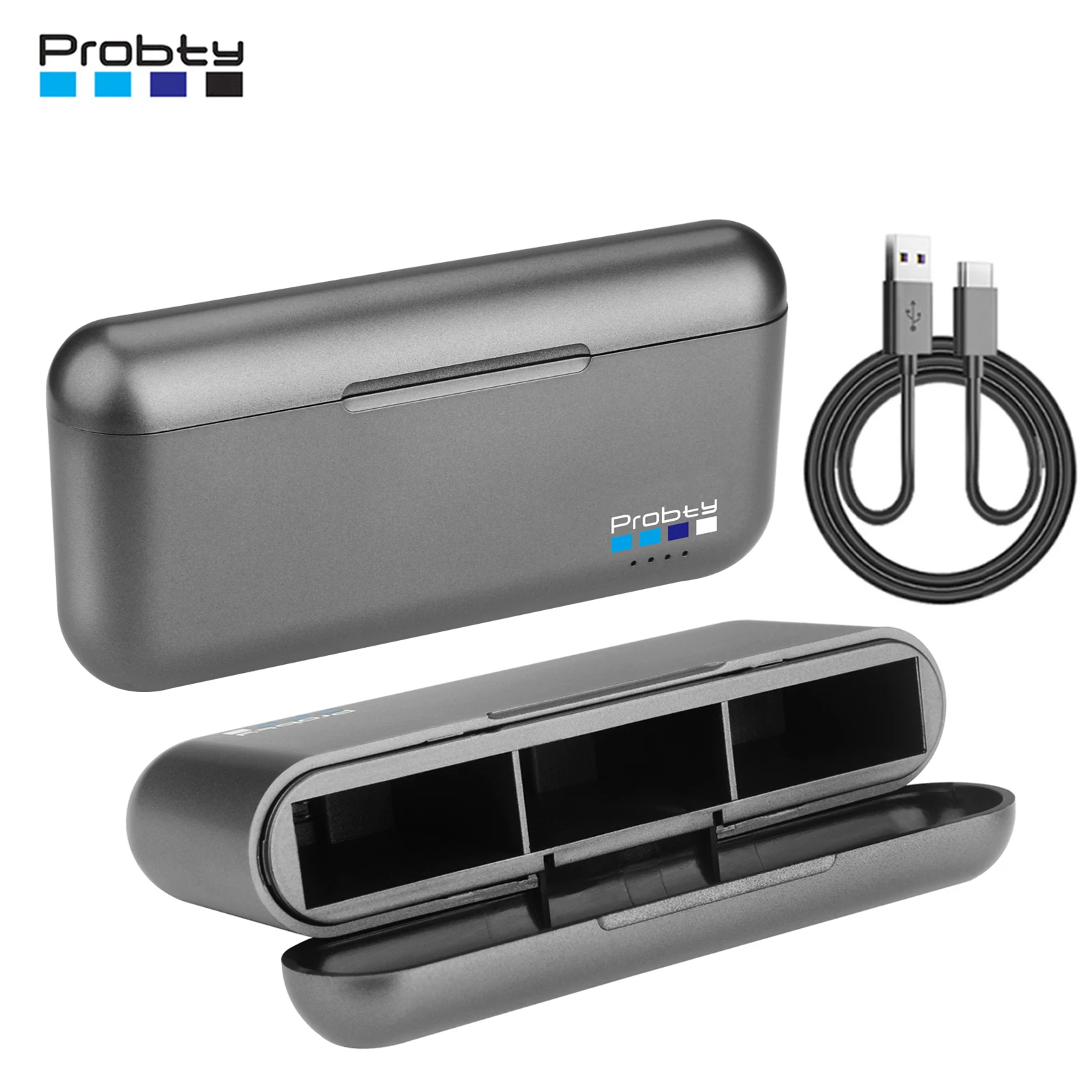 Compatible con modelos:Para GoPro 12 GoPro 11 GoPro 10 GoPro 9Luz rojaEncendido normalCarga con luz rojaLuz verde completamente cargadaEspecificaciones del cargador:Parámetro de entrada: 5V / 3Aparámetro de salida: 4,4 V/0,8 A * 3)peso: 49 gDimensiones exteriores: 11,7*5,6*2,3 cmCaracterísticas del cargador:1.Cargador de batería 3 en 1 para cámara de acción GoPro.Puede cargar tres baterías simultáneamente,Compatible con la batería original.2.Carga rápida, alta corriente de 2,4 A, una carga completa solo tarda 3 h.3.El cargador se puede alimentar con un adaptador de cargador de pared, un banco de energía o su PC, computadora portátil, etc.4.El cargador está hecho de material de PC seleccionado de alta resistencia.El cargador y la batería de respaldo están completamente protegidos para evitar sobrecargas, cortocircuitos y descargas eléctricas.sobredescarga, sobrecalentamiento, sobrecorriente y sobretensión.5.Fácil de transportar: llévalo contigo dondequiera que vayas, puedes guardarlo en tu mochila o equipaje.y se puede utilizar como una excelente caja de almacenamiento para 3 baterías GoPro.7.Interfaz tipo c, no se requieren cables adaptadores.El cargador viene con un cable USB tipo C.Contenido del paquete:1 x caja de carga1 cable de carga.