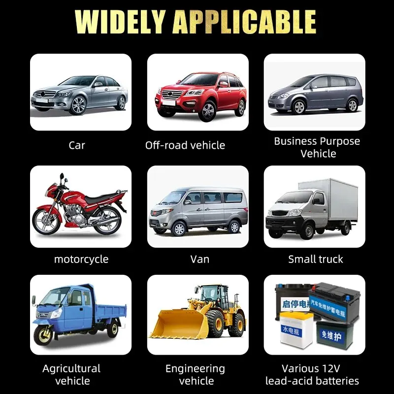 Tipos de baterías: La mayoría de los tipos de baterías de plomo-ácido, incluidas calcio, gel AGM, húmedas, plomo-ácido, etc.