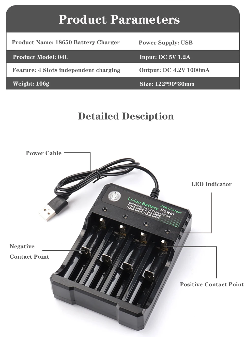 Nombre del producto: Cargador 3,7 de batería de litio 18650 V