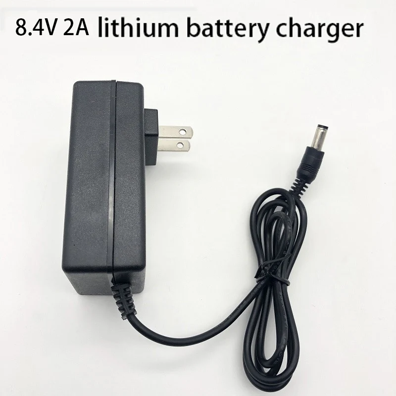 Nombre: cargador de batería de litio dc5.5 mm * 2,1mm color: negro especificaciones: EE. UU./UE corriente: 1A / 2A voltaje de entrada: 100-240V voltaje de salida: CC: 21V / 1A, 8,4 V / 2A, 16,8 V / 2A función de protección: Protección contra sobrecarga 105% ~ 150% recuperación automática de potencia nominal del voltaje nominal del dispositivo de protección contra sobretensión de 115% a 135% línea de salida CC: 1 metro interfaz de salida CC: 5,5x2,1mm (compatible con DC5.5 x 2,5mm) Peso: 100 gramos lista: cargador de batería de litio DC5.5 mm x 2,1mm x 1