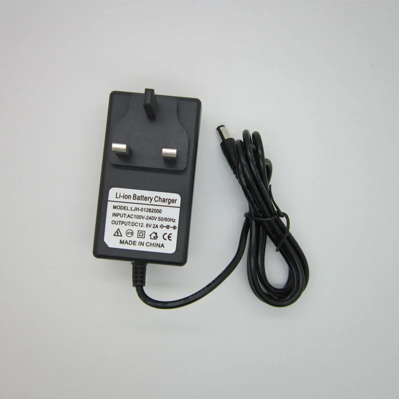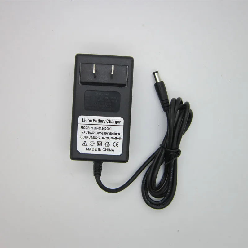 Input: AC100-240V 50/60HZ 0.8ACharging voltage: DC12.6VCharging current: 2ACharging mode: CC-CVCharge indicator: Red light=charging, green light=fully chargedCharger port: DC5.5 x 2.1mmSecurity protection: OVP/OCP/overload protection/short-circuit protectionApplication: Lithium batteries (lithium-ion batteries, lithium polymer batteries) the nominal voltage of the battery pack is 11.1V-12.6VNote: Our products have EU/US/UK plugs. If there are other plug specifications, please message us.Protective functions:1. Input over-current protectionWhen the input current is greater than 2A, the charger will cut off the fuse to avoid internal circuit abnormalities causing fires and other risks.2. The output current protectionLi-ion battery charger for charging current is limited to a range to maintain battery safety and battery life.3. Short-circuit protectionWhen the charger is improperly used, the charger output current will be 200mA or less to avoid damage.