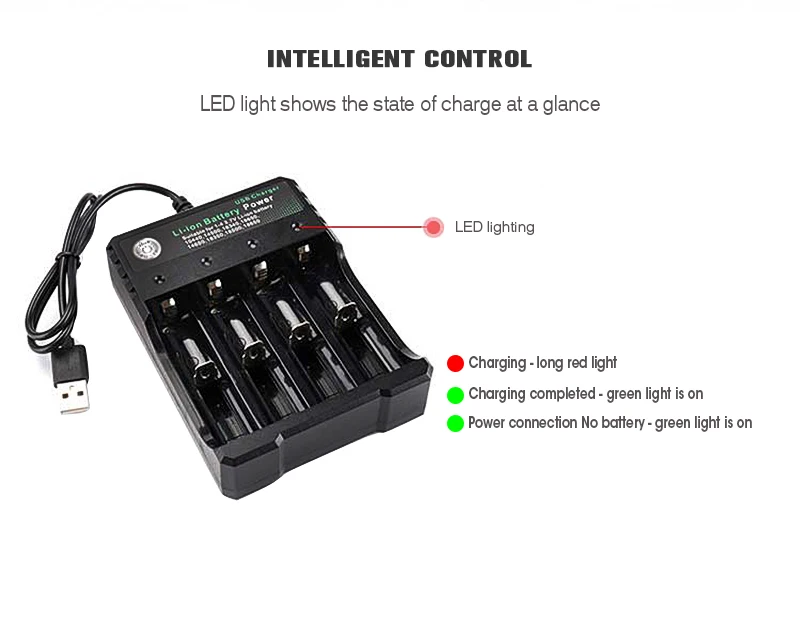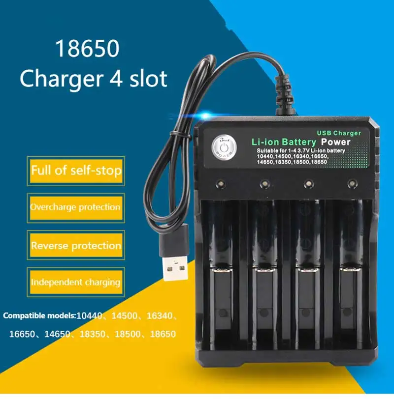 Comprar Cargador de batería de litio 18650, Cargador USB con ranura 1/2/4, carga independiente, batería recargable con luz LED