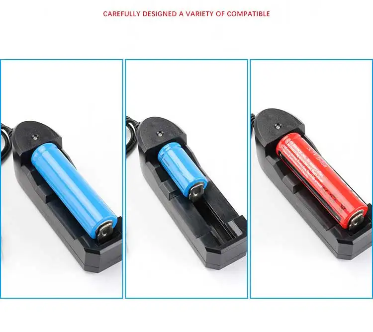 Nombre del producto: 18650 CargadorCaracterísticas: 1/2/4 ranuras de carga independientePeso del producto: 35/70/106 gramosModo de fuente de alimentación: fuente de alimentación USB regularVoltaje de entrada: DC 5V 1-2AVoltaje de salida: DC 4,2 V 1000mATamaño del producto: 90*30*122mm