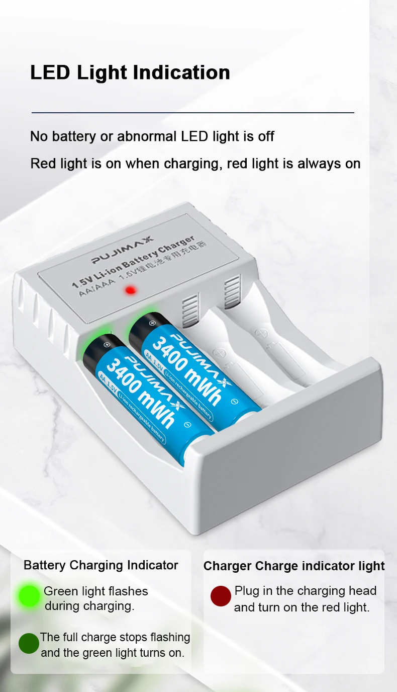 --3. El cargador solo puede cargar una batería de litio de 1,5 V, no para ninguna otra batería.