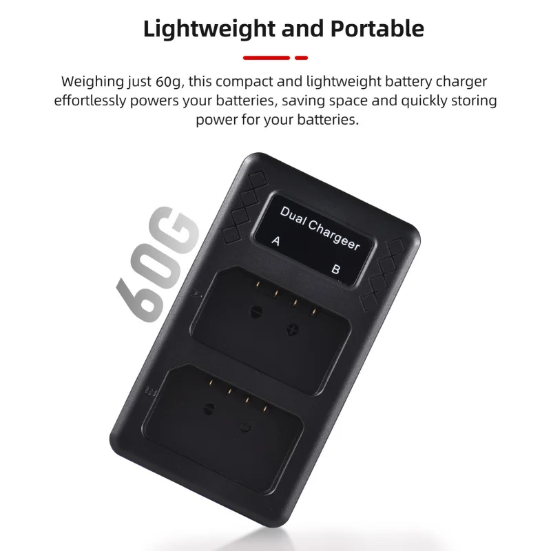 【Ligero y portátil】 Con un peso de solo 60g, este cargador de batería compacto y ligero alimenta sin esfuerzo sus baterías, ahorrando espacio y almacenando rápidamente energía para sus baterías.