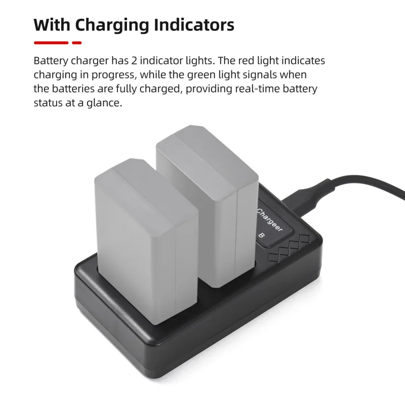 【Cargador de batería de 2 ranuras】 Equipado con un diseño de carga de 2 ranuras, el cargador de batería puede cargar 1 o 2 baterías al mismo tiempo, resolver el problema de la duración de la batería y satisfacer las necesidades al mismo tiempo.