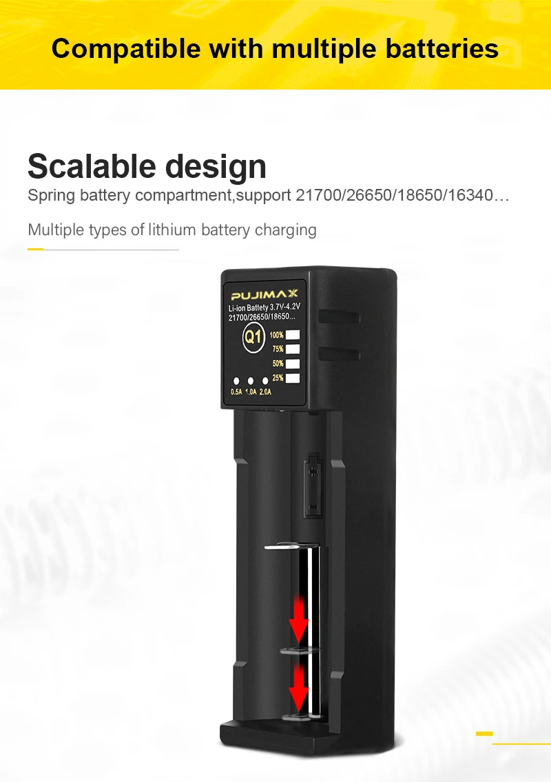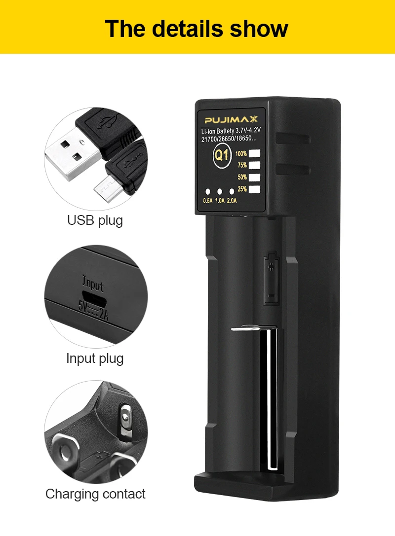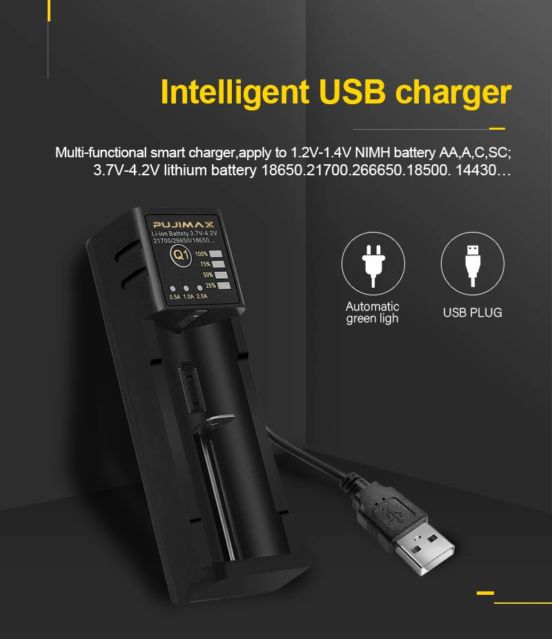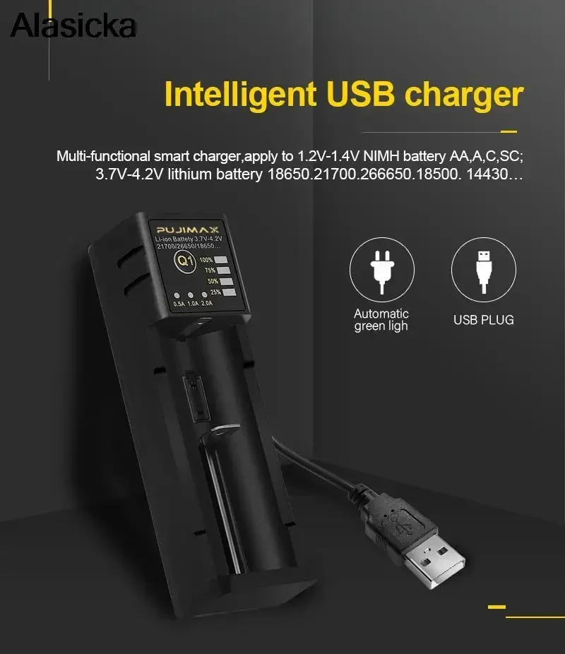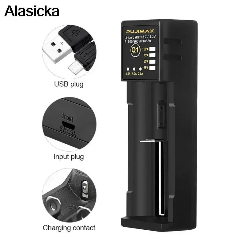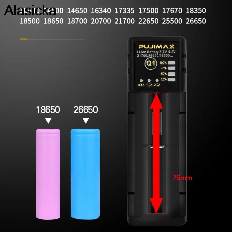 Cargador de batería 18650 Carga inteligente corriente ajustable 26650 18350 14500 26500 22650 cargador de batería recargable de iones de litio