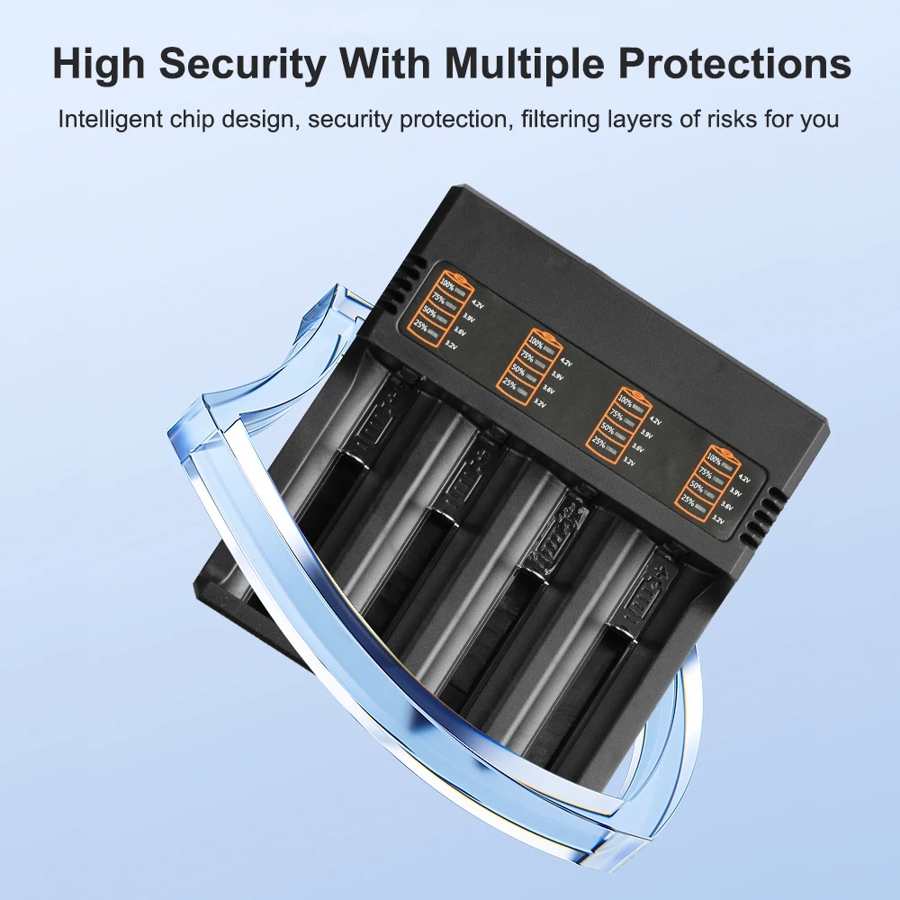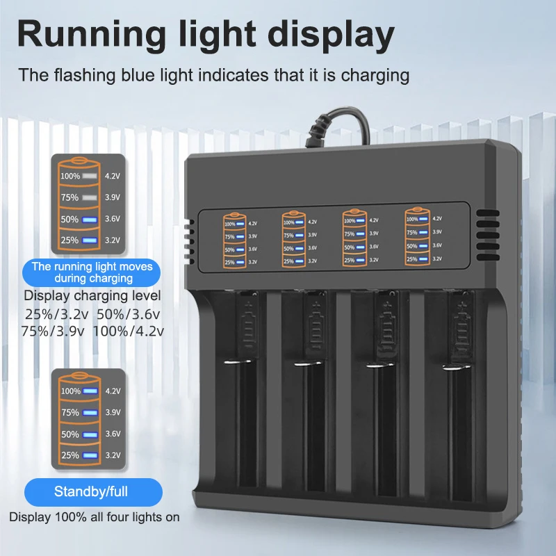 Características: ranura del cargador con pantalla positiva y negativa, la batería está prohibida al revés. Protección perfecta contra sobrecorriente y cortocircuitos, no es necesario cortar la fuente de alimentación inmediatamente después de estar llena, viene con la función de evitar la sobrecarga, la ranura del asiento con indicador de energía de la batería.