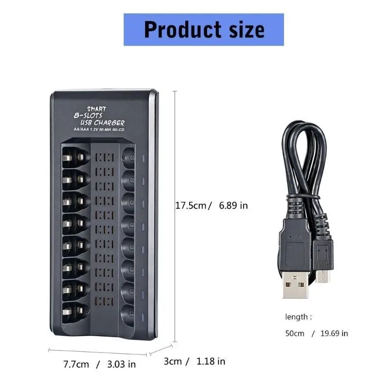 Características:OOTDTYExperimente una carga eficiente con nuestro USB de 8 ranuras para baterías recargables de alta capacidad AA/Triple A, lo que garantiza que cada batería se cargue de forma independiente para un rendimiento óptimo.