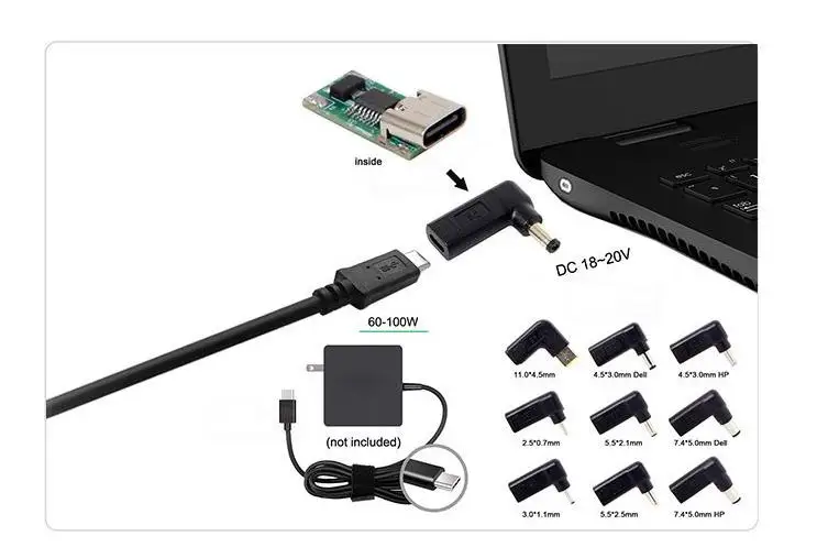 USB-C tipo C hembra a 7,9*5,5 mm macho USB PD emulador activador adaptador de corriente CC en ángulo convertidor de enchufe para portátil Lenovo Thinkpad
