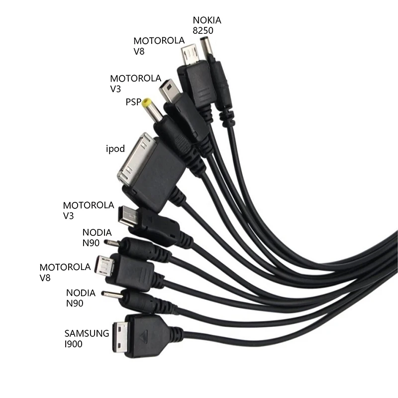 Cable de carga 10 en 1 compatible con muchos teléfonos móviles y evita el desorden de cables de diferentes tipos de teléfonos móviles.