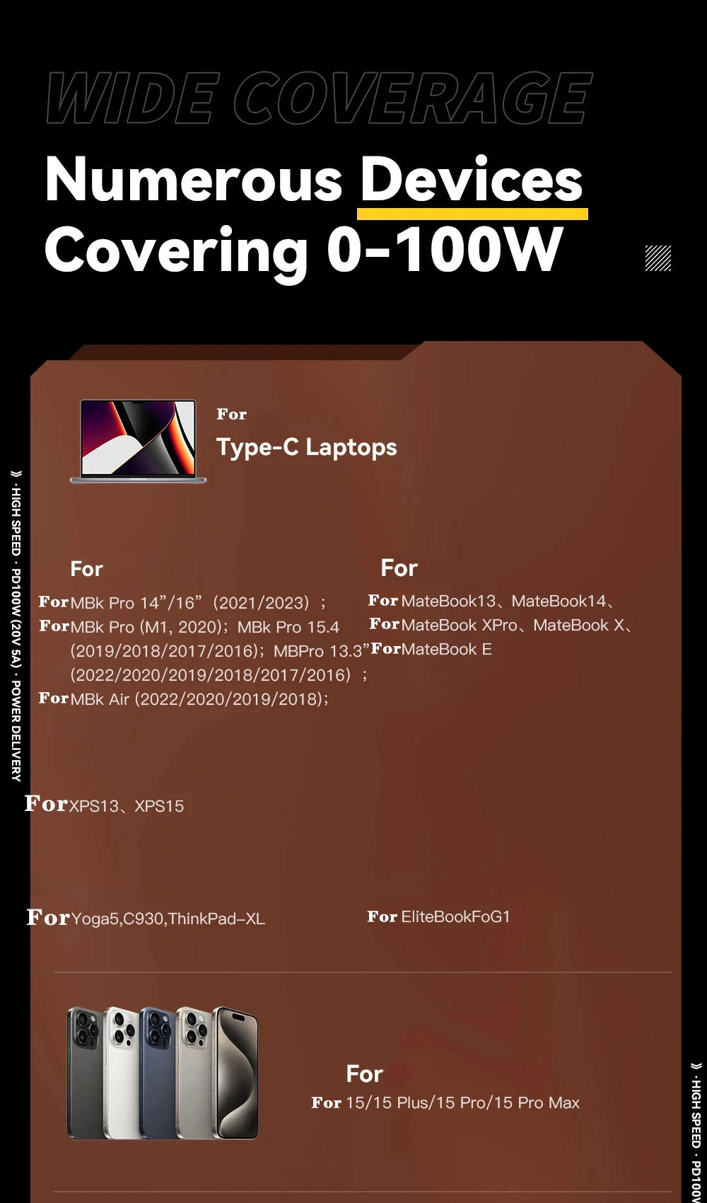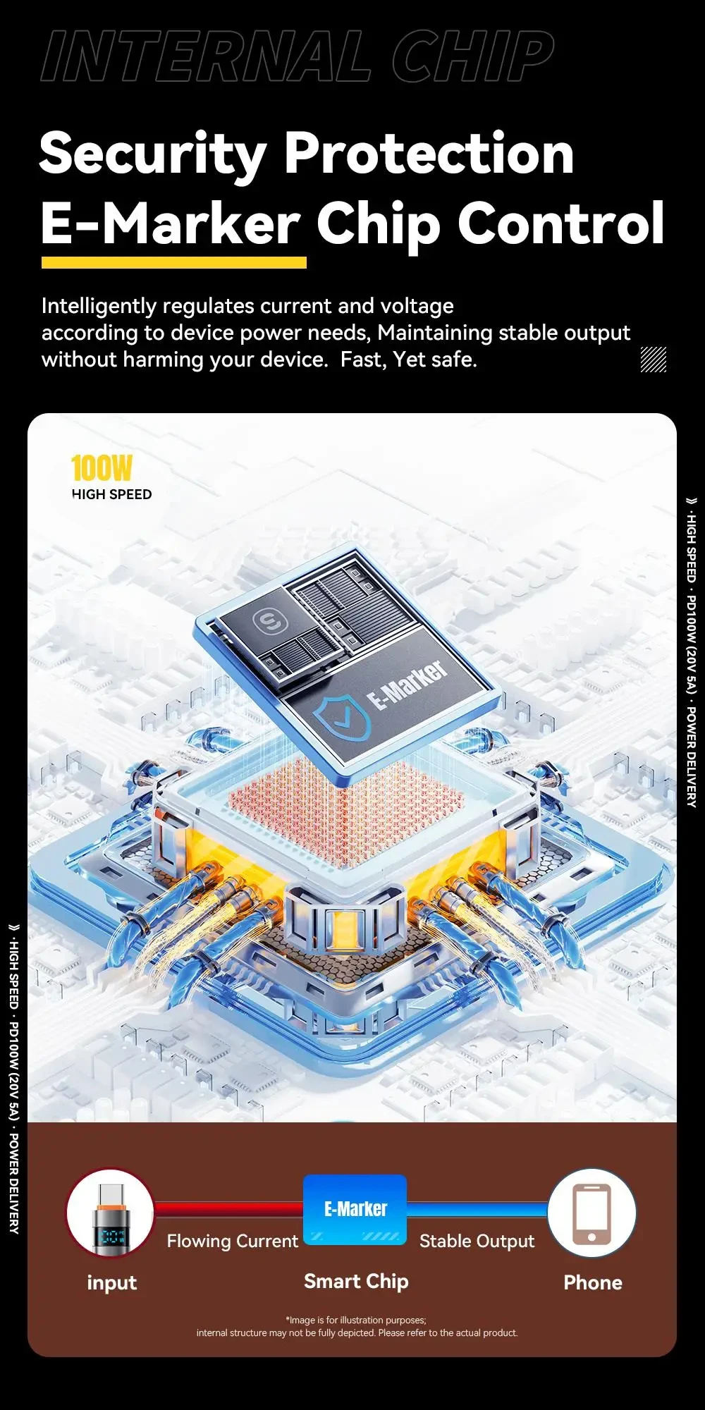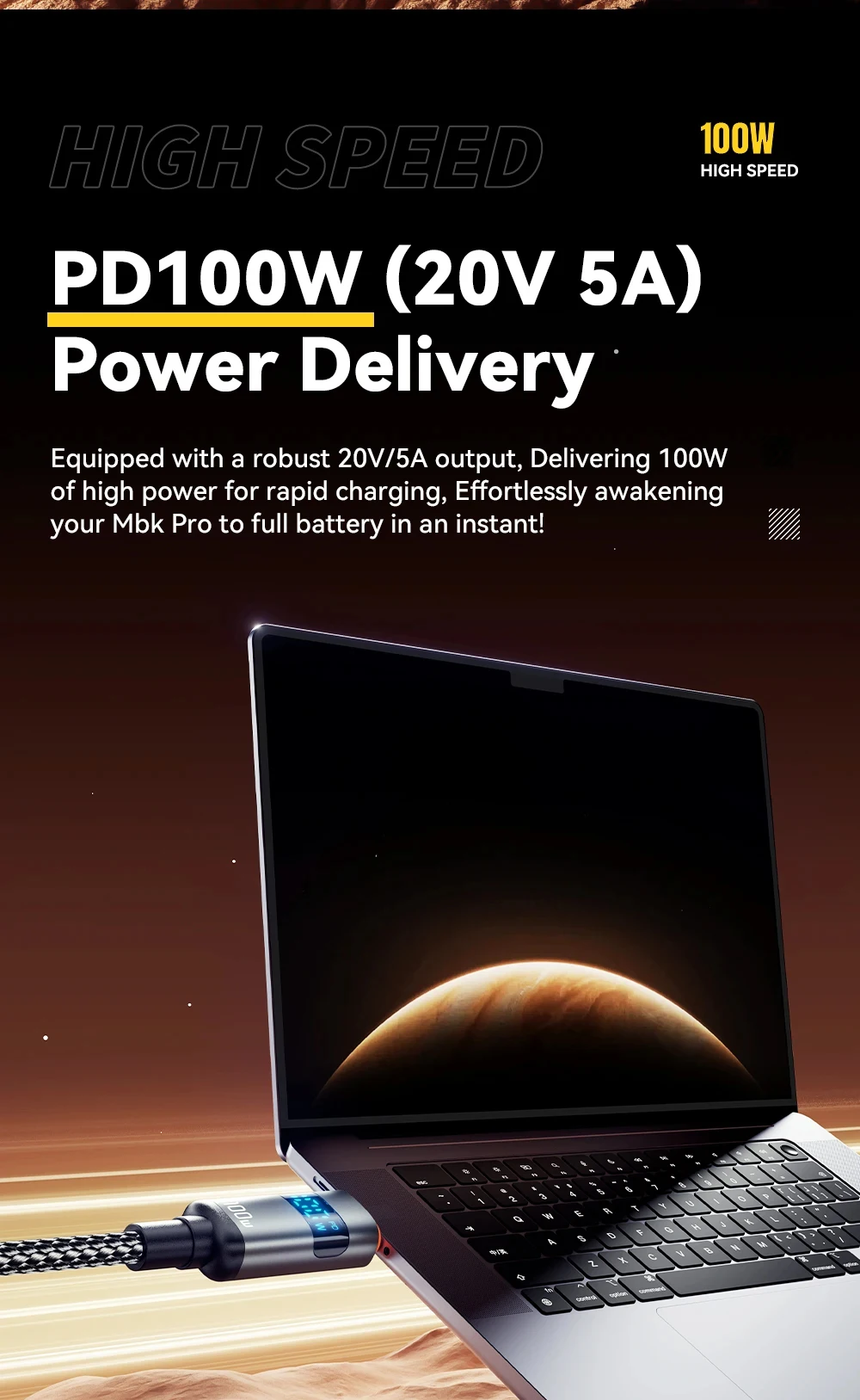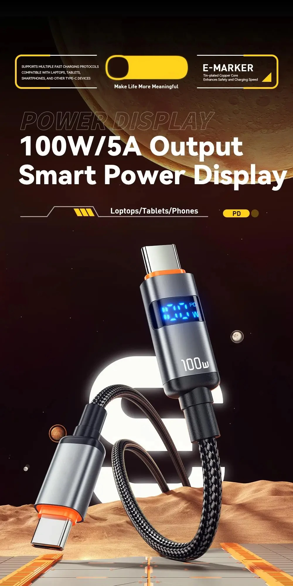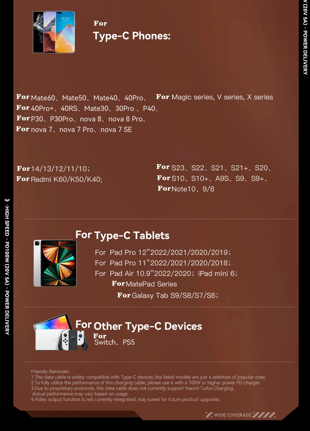 Cargador de carga rápida PD de 100W, Cables de pantalla USB a tipo C, Cable tipo C a tipo C para Huawei, Xiaomi 14, Macbook pro, iPad