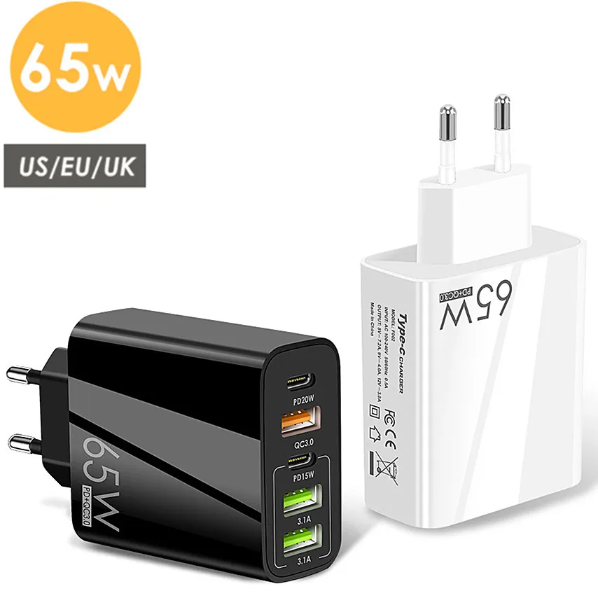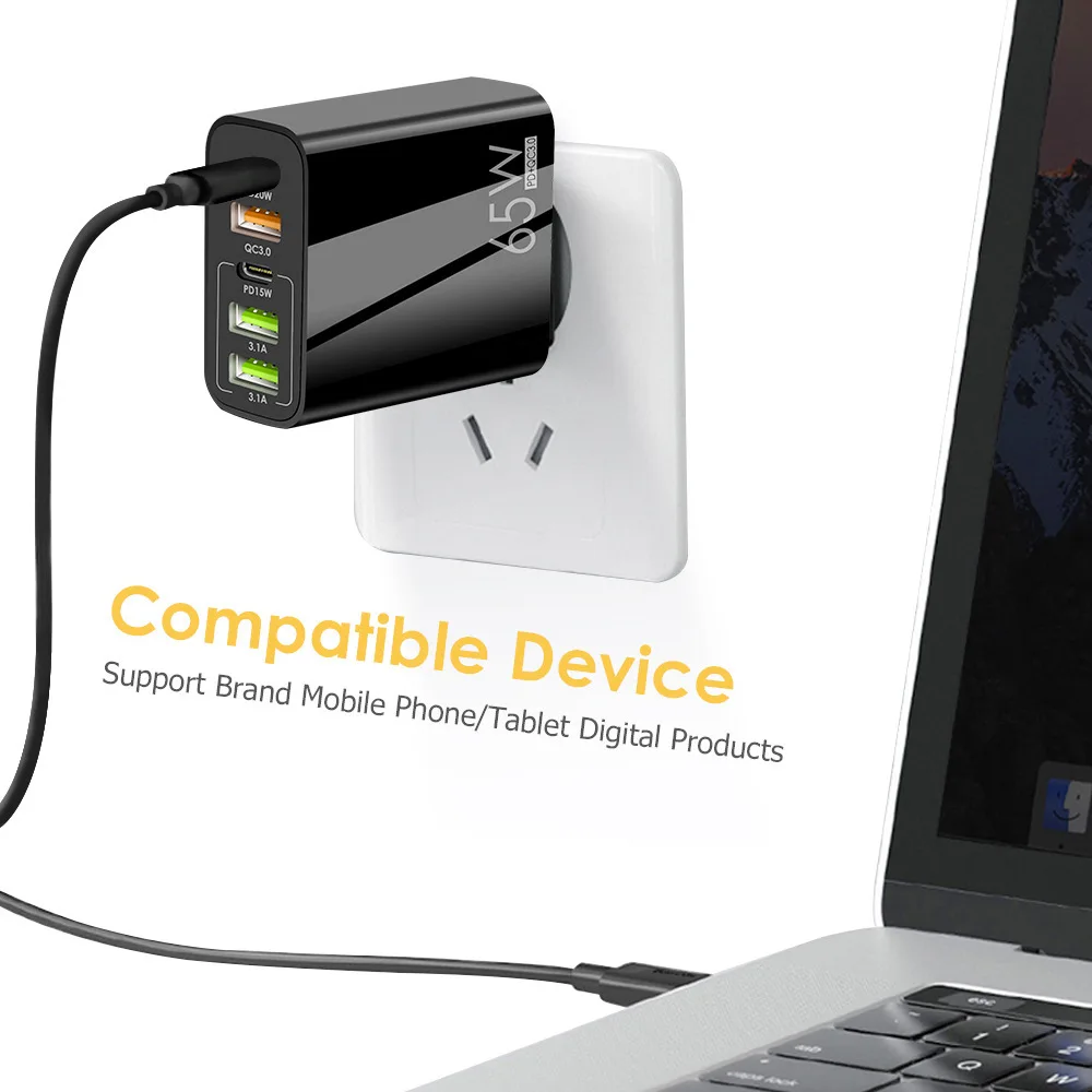 Comprar Cargador de carga rápida PD 65W, cargador Usb C para iphone 14 13 12 Pro QC3.0 3USB 2 PD, adaptador de carga para teléfono móvil para Xiaomi Samsung LG