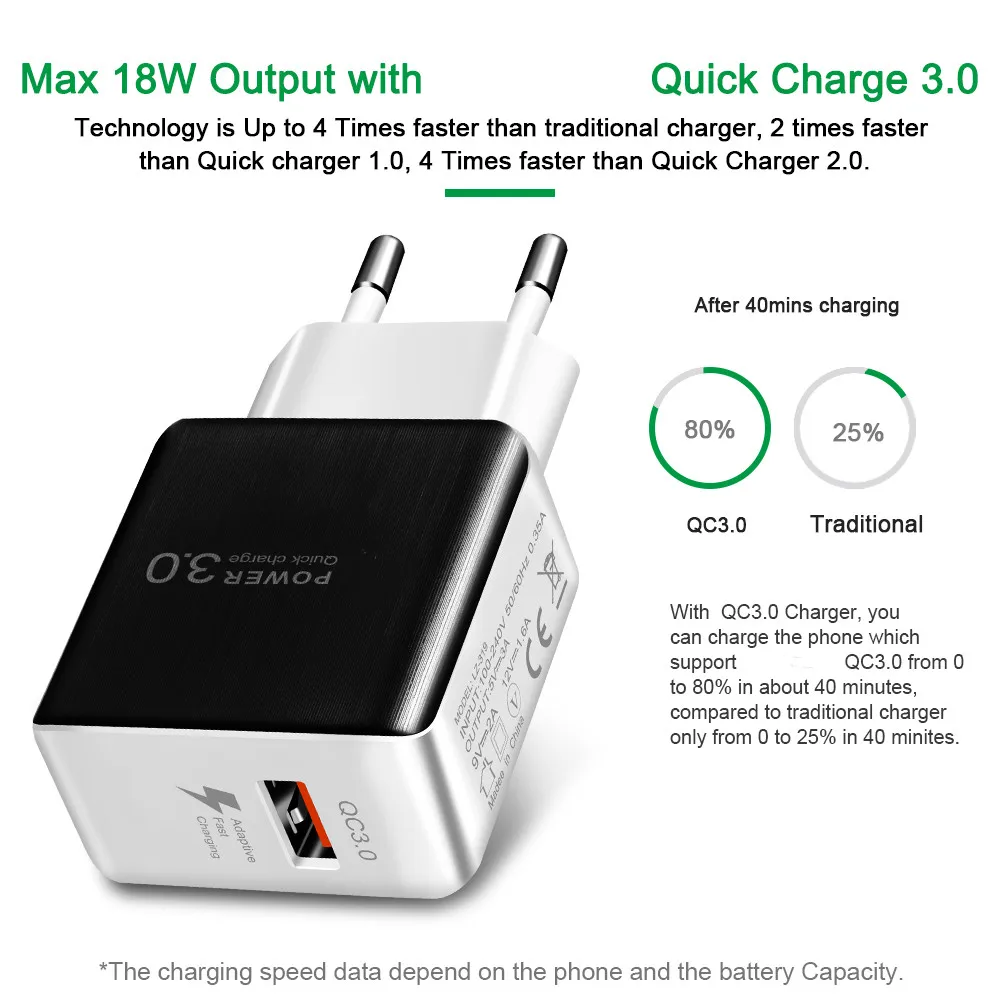 Cargador de carga rápida para teléfono móvil, dispositivo de carga rápida de 18W 3,0 para iPhone 11 Pro Max, con enchufe europeo/estadounidense para Samsung S20 Plus, Cargador USB de pared