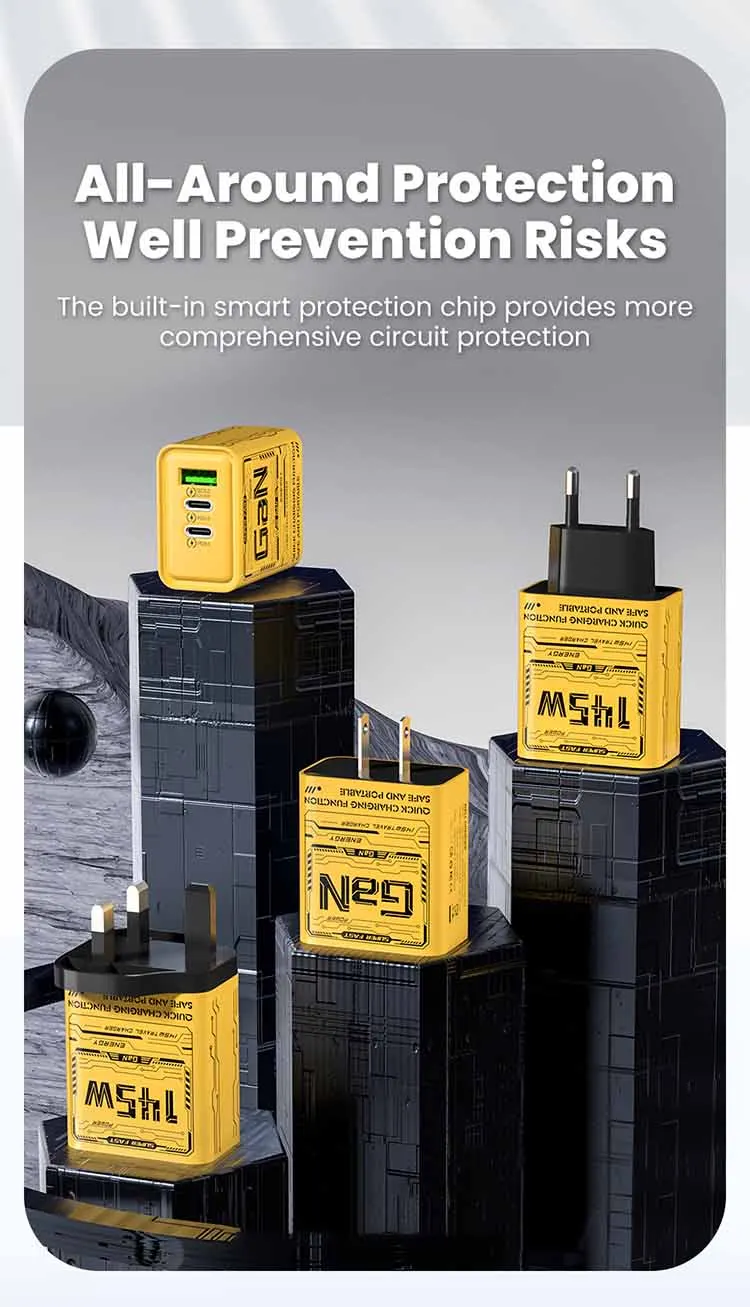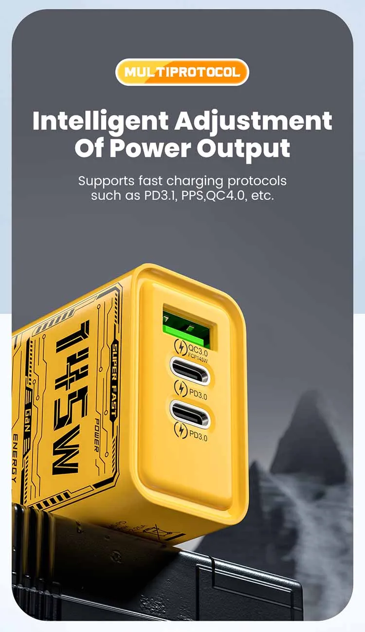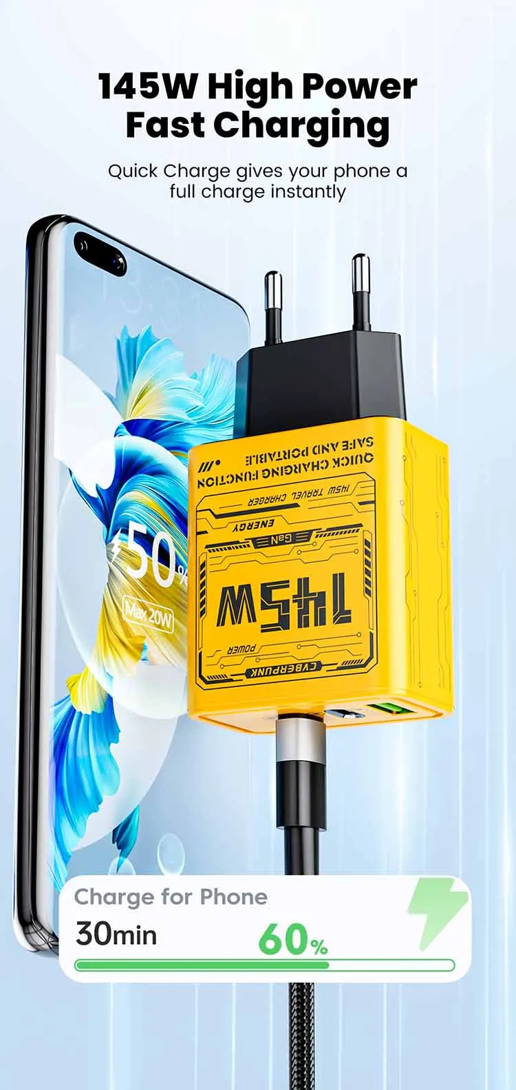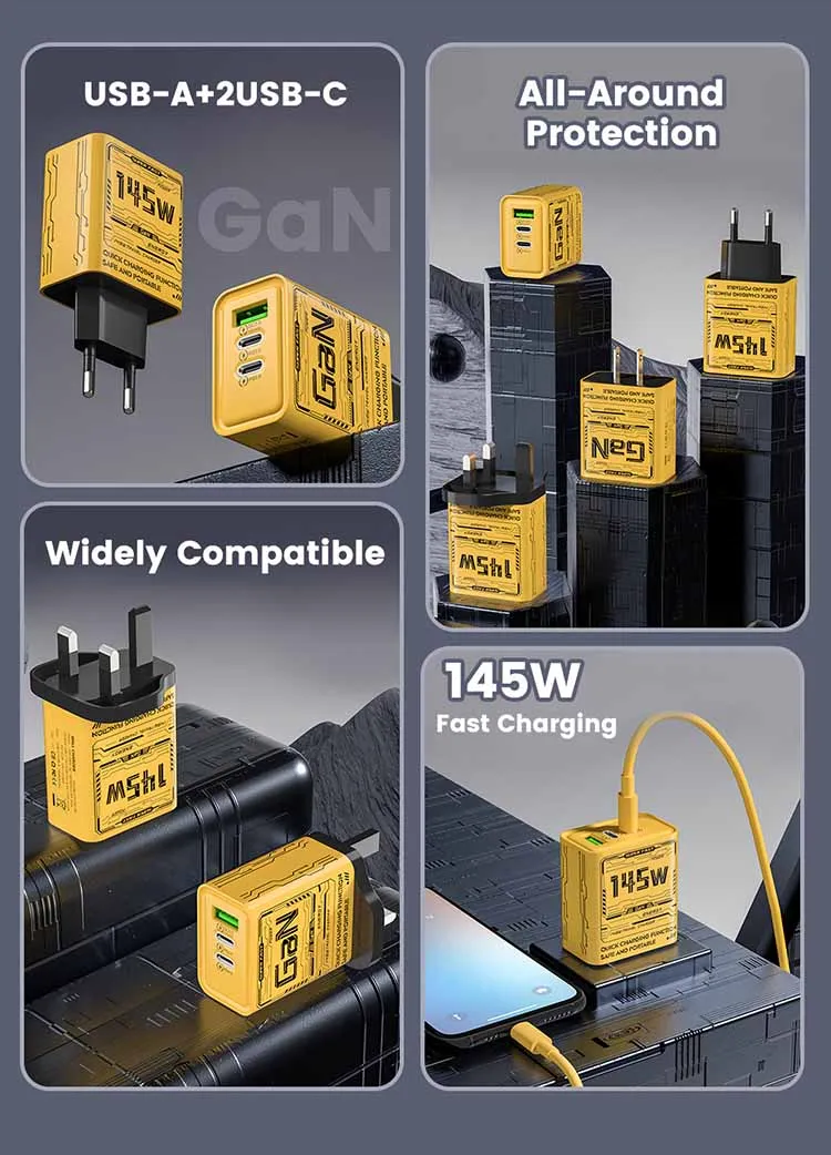 Cargador de carga rápida USB C de 3 puertos, cargadores PD USB GaN de 145W para iPhone 15 Pro QC 3,0, adaptador de cargador para Samsung, Xiaomi y Huawei