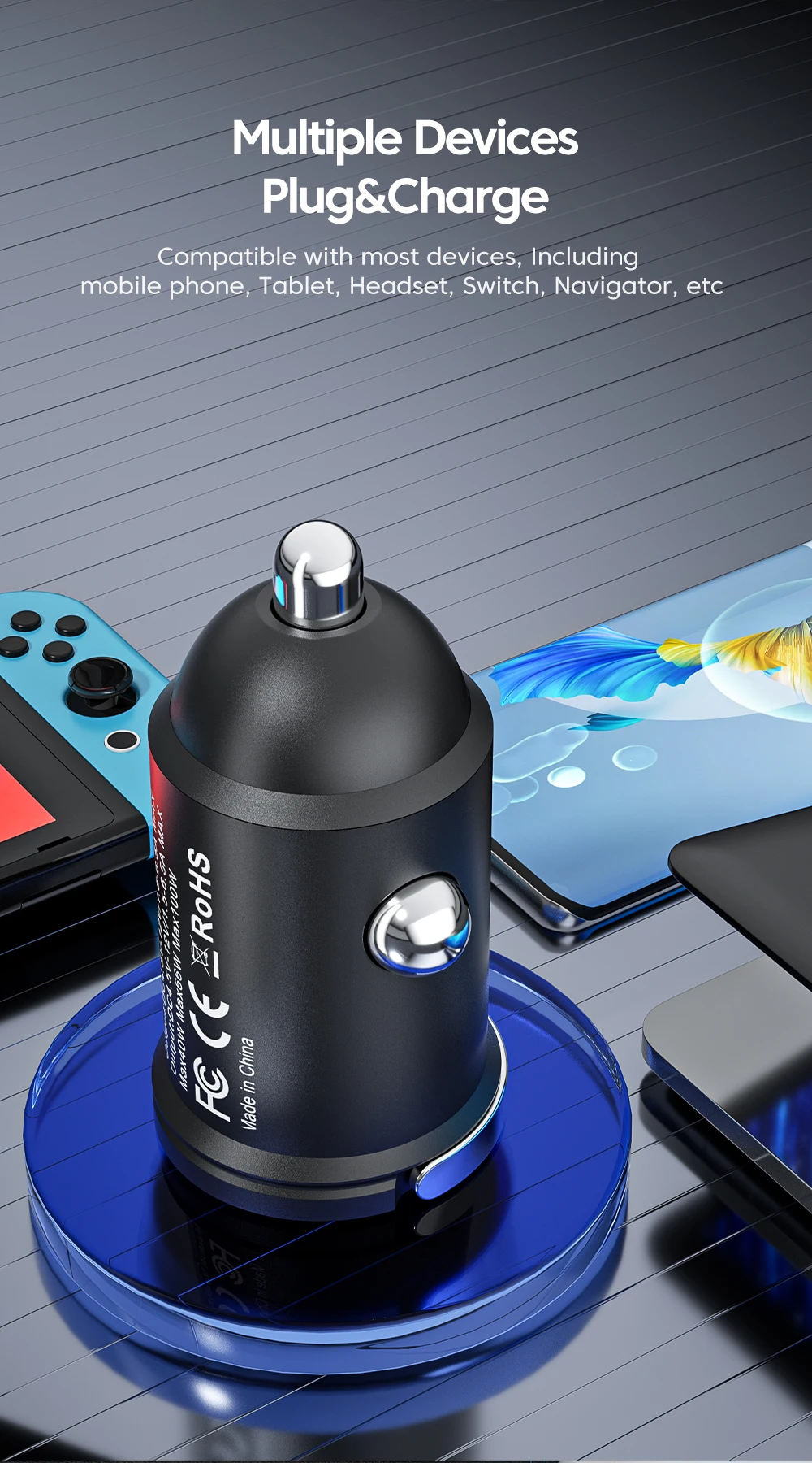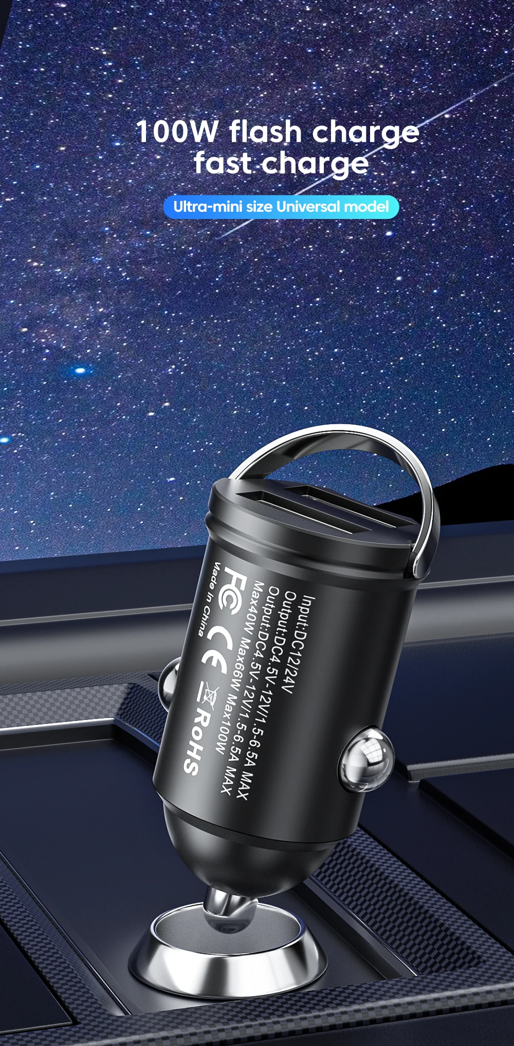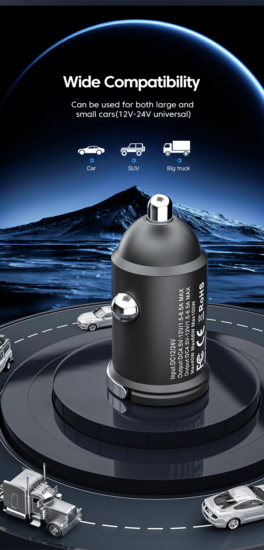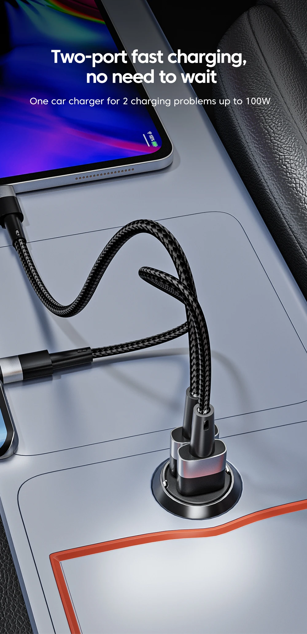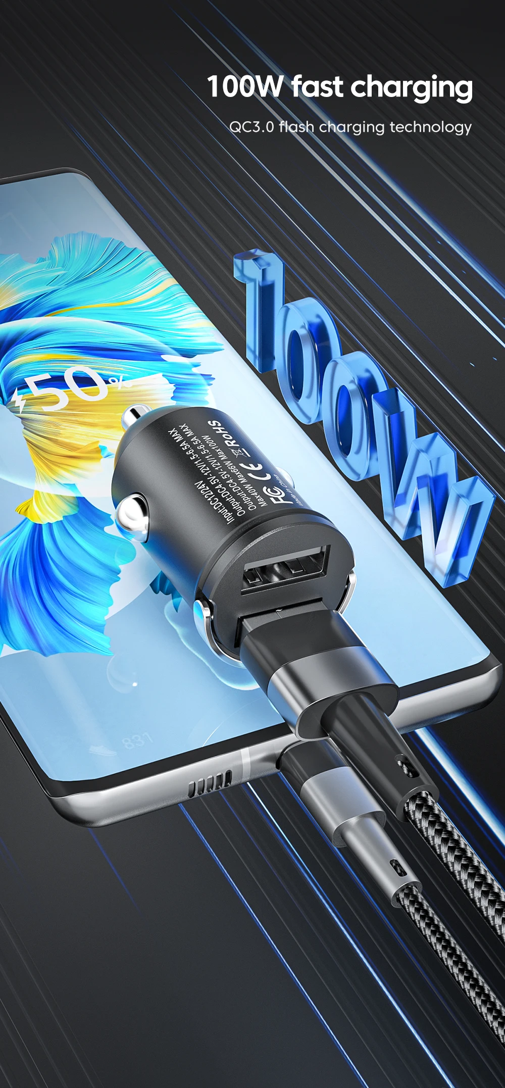 Comprar Cargador de coche de 100w, puerto USB dual A, adaptador de carga rápida para teléfono de coche para Xiaomi, iPhone, Samsung, Huawei, Oneplus, Redmi, Realme, POCO, teléfonos móviles, carga QC3.0