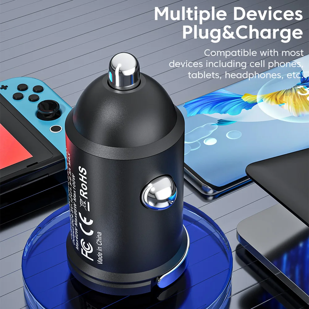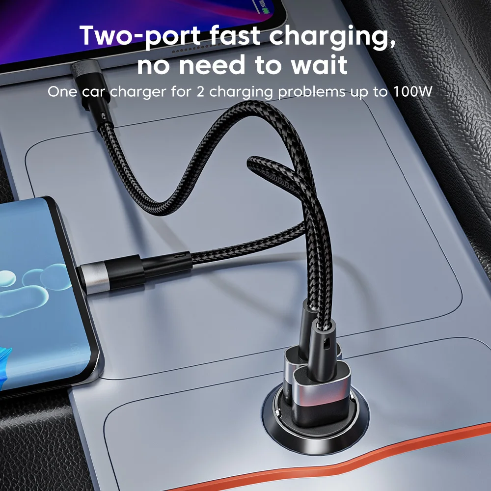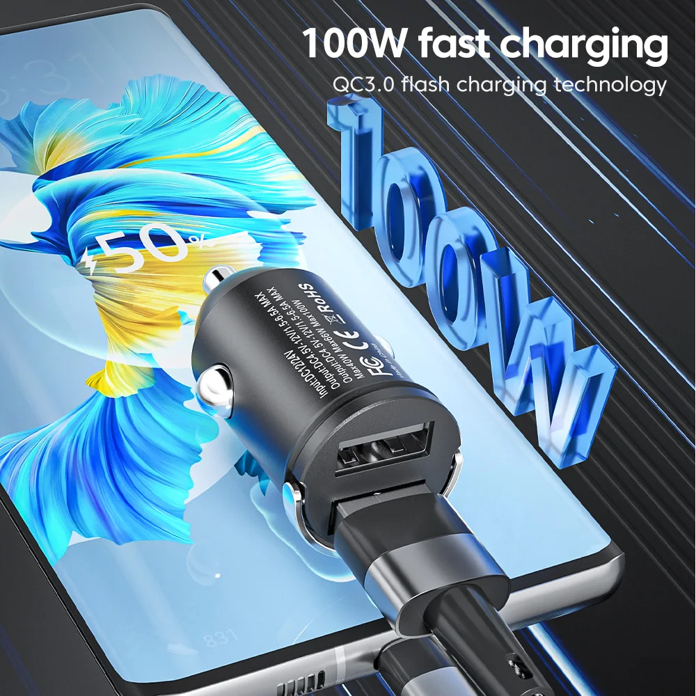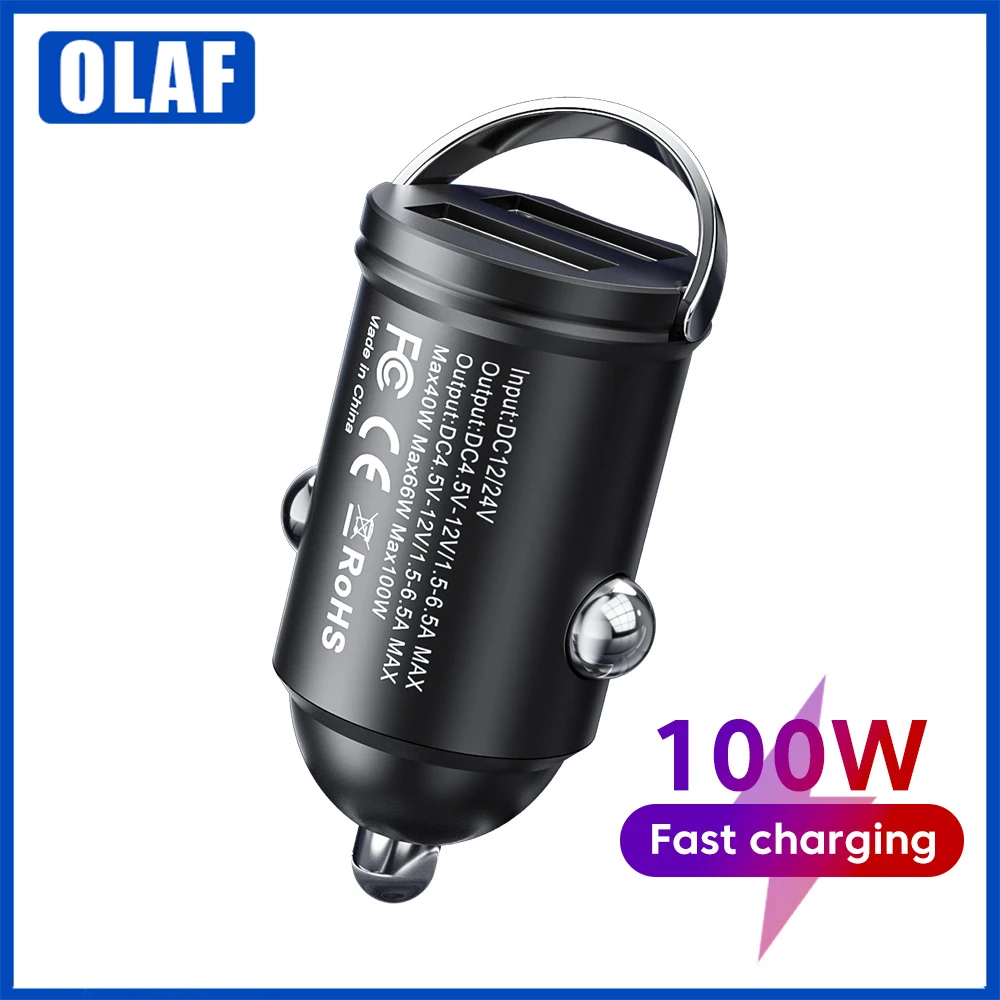 Comprar Cargador de coche de 100w, puerto USB dual A, adaptador de carga rápida para teléfono de coche para Xiaomi, iPhone, Samsung, Huawei, Oneplus, Redmi, Realme, POCO, teléfonos móviles, carga QC3.0