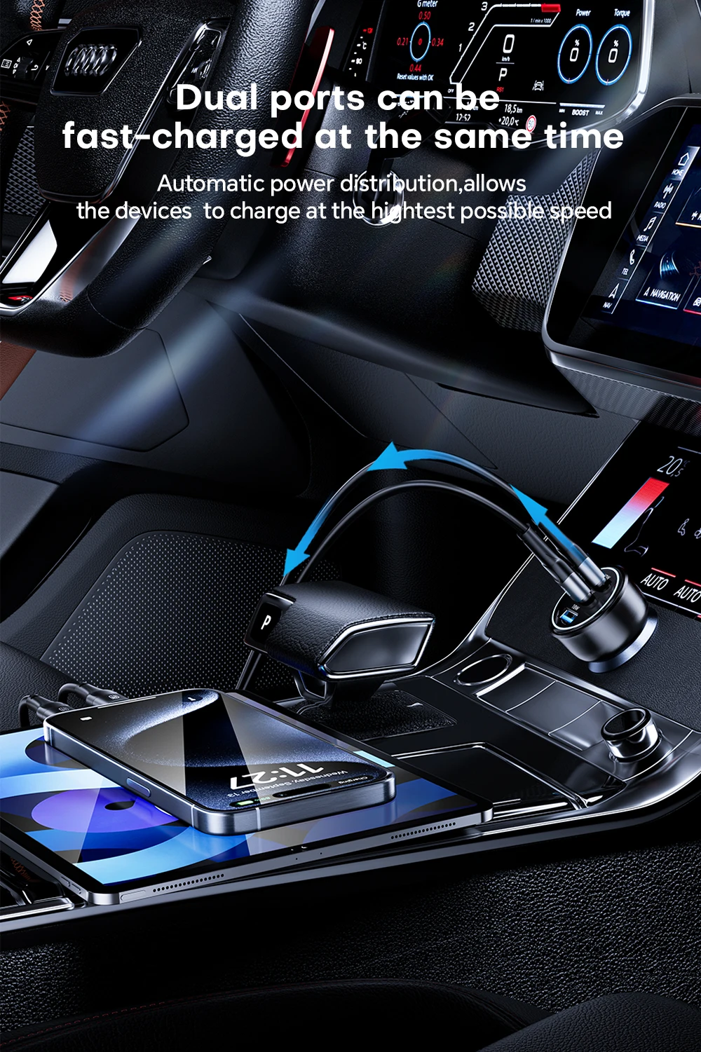 Comprar Cargador de coche de 138W, USB tipo C, doble puerto USB, teléfono rápido PD, carga rápida para IPhone 14, Samsung, Xiaomi, IPad, portátiles, tabletas