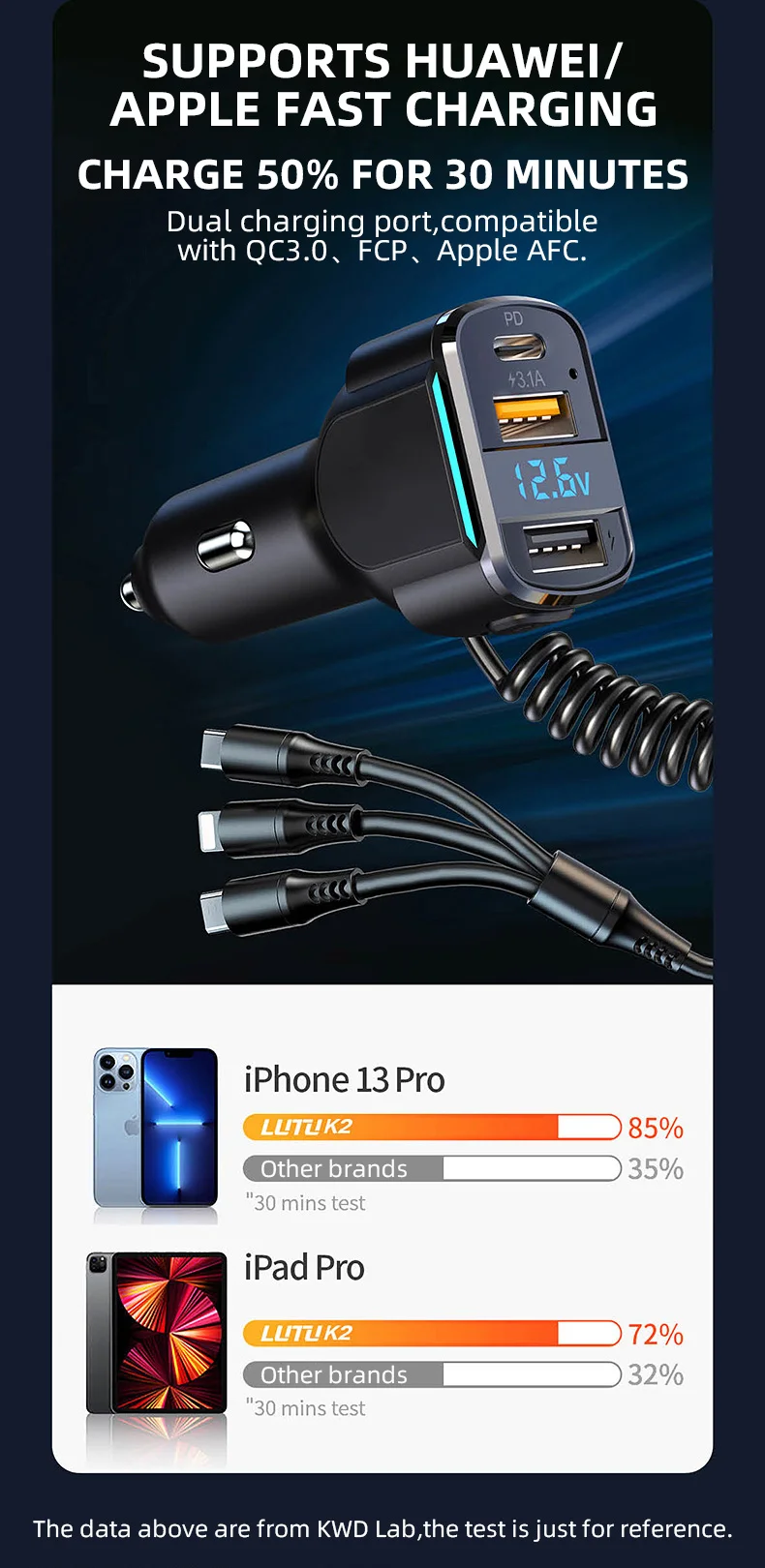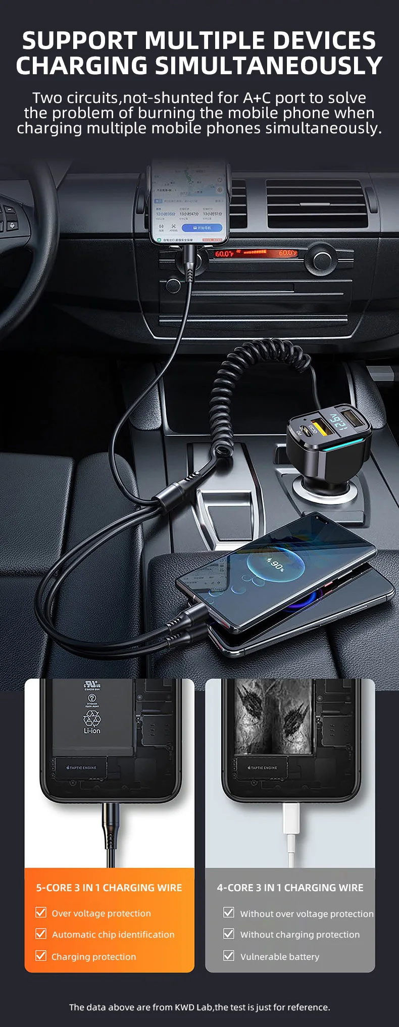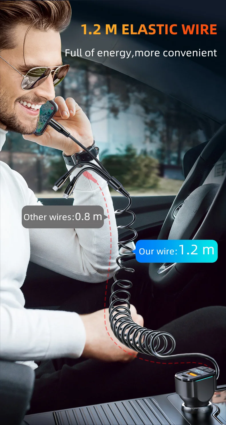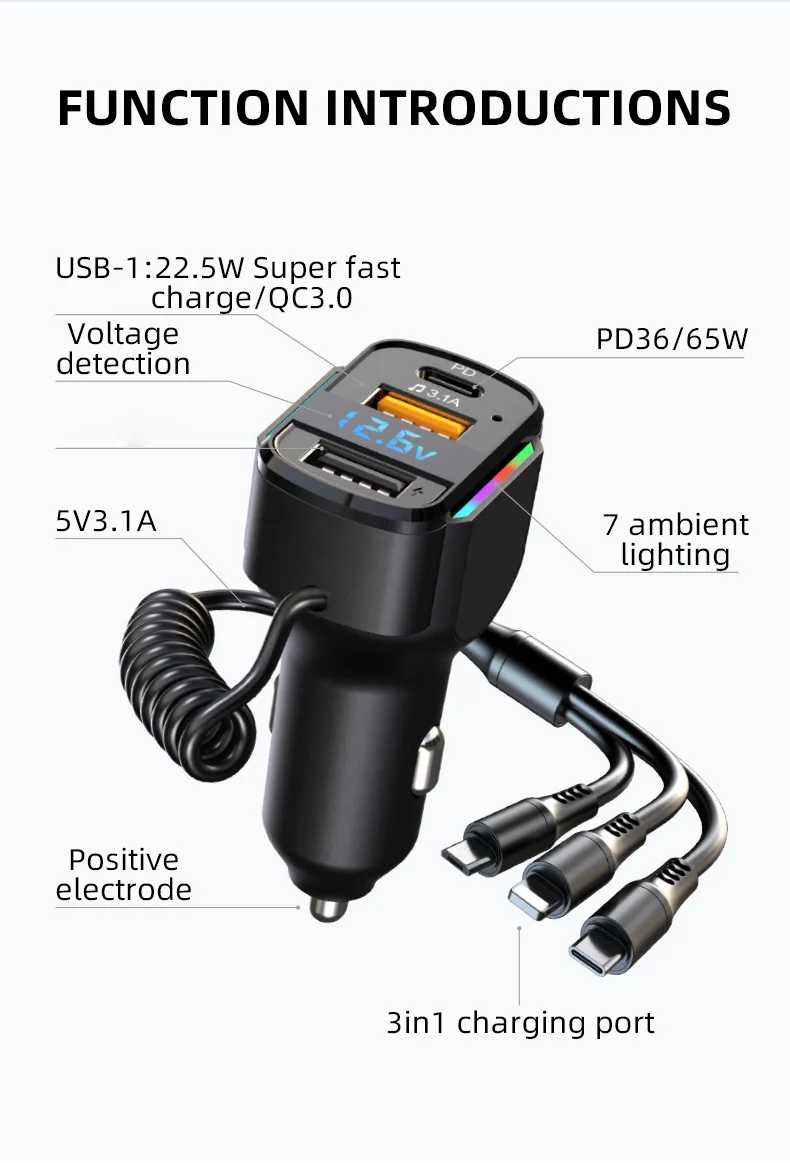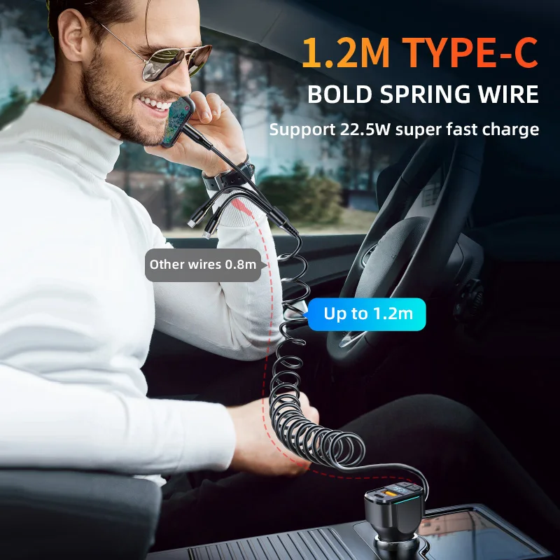 Función: Cargador de coche, Cargador USB C, cable de carga rápida de resorte 3 en 1