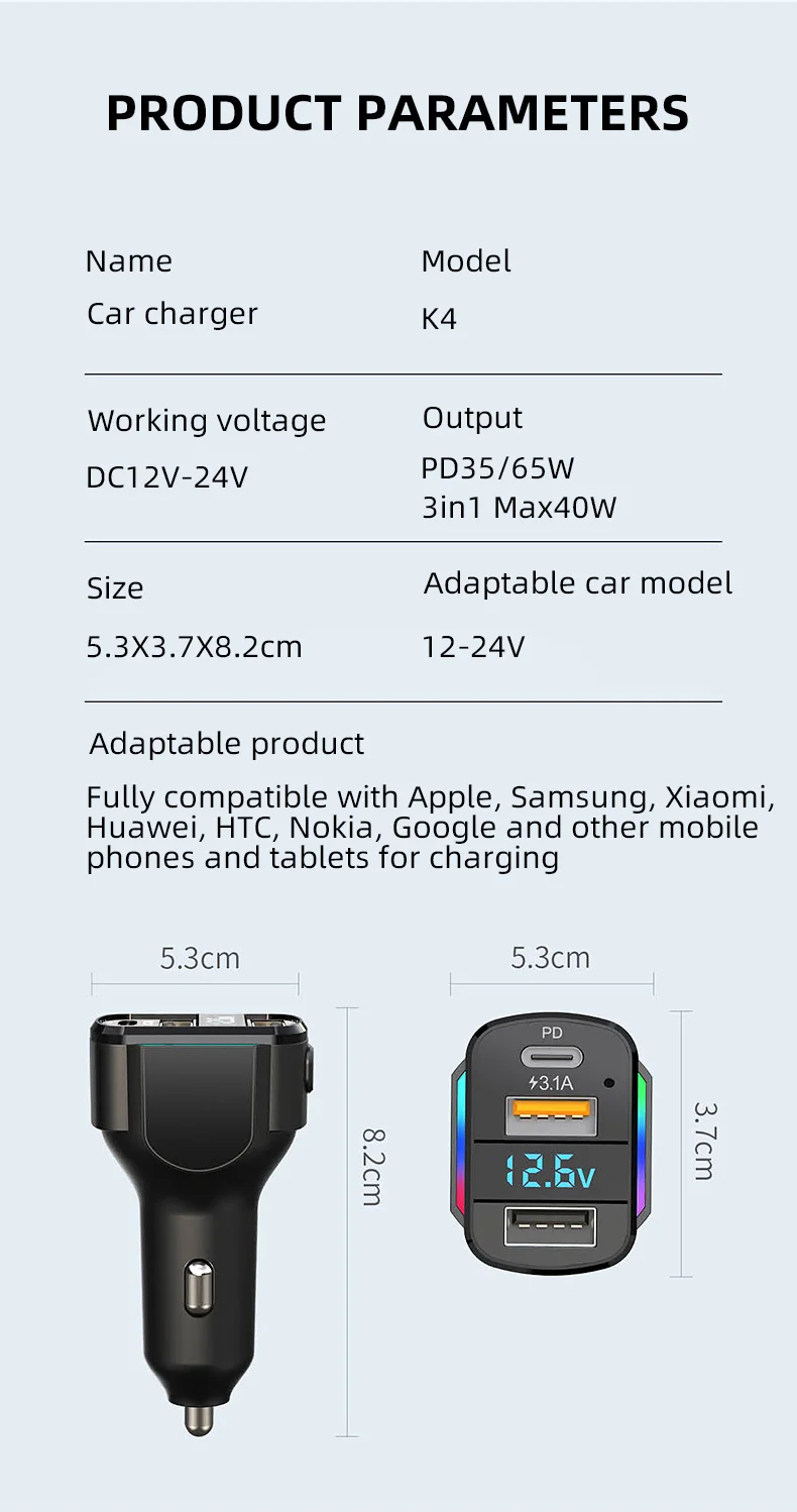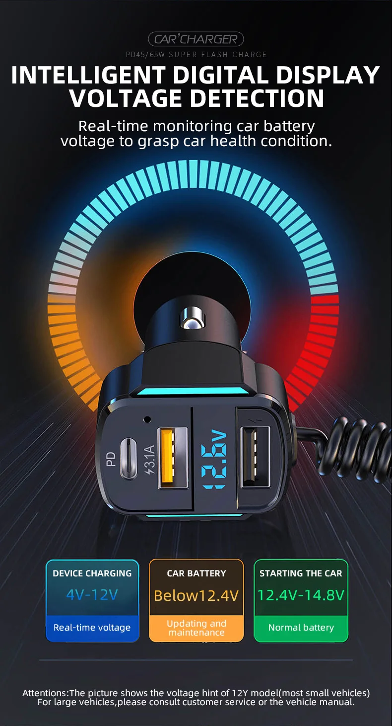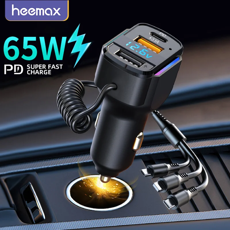 Cargador USB para coche Heemax PD65W carga rápida 4,0 QC PD 3,0 SCP 5A USB tipo C carga rápida para coche