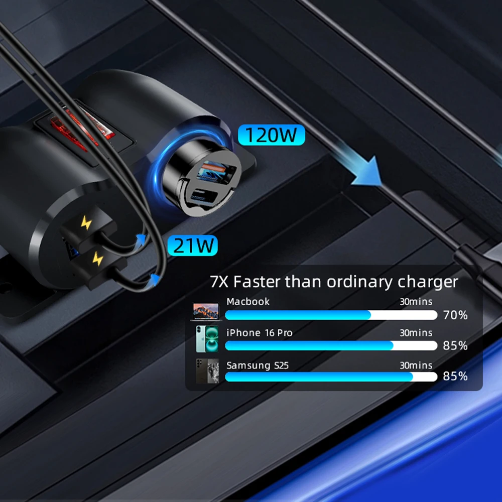 Enchufe para encendedor de cigarrillos de 12 V La toma del encendedor tiene una potencia de 120W.Adecuado para automóviles, SUV, furgonetas, barcos, motocicletas, vehículos recreativos y más de 12-24 V CC para las necesidades diarias.Alimente teléfonos móviles, GPS, cámaras digitales, PDA y otros accesorios USB.