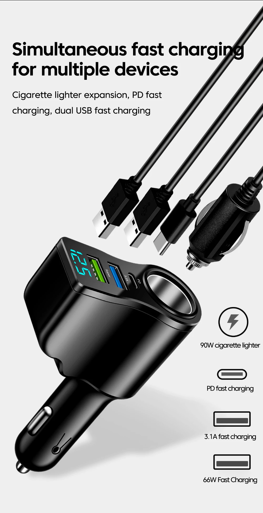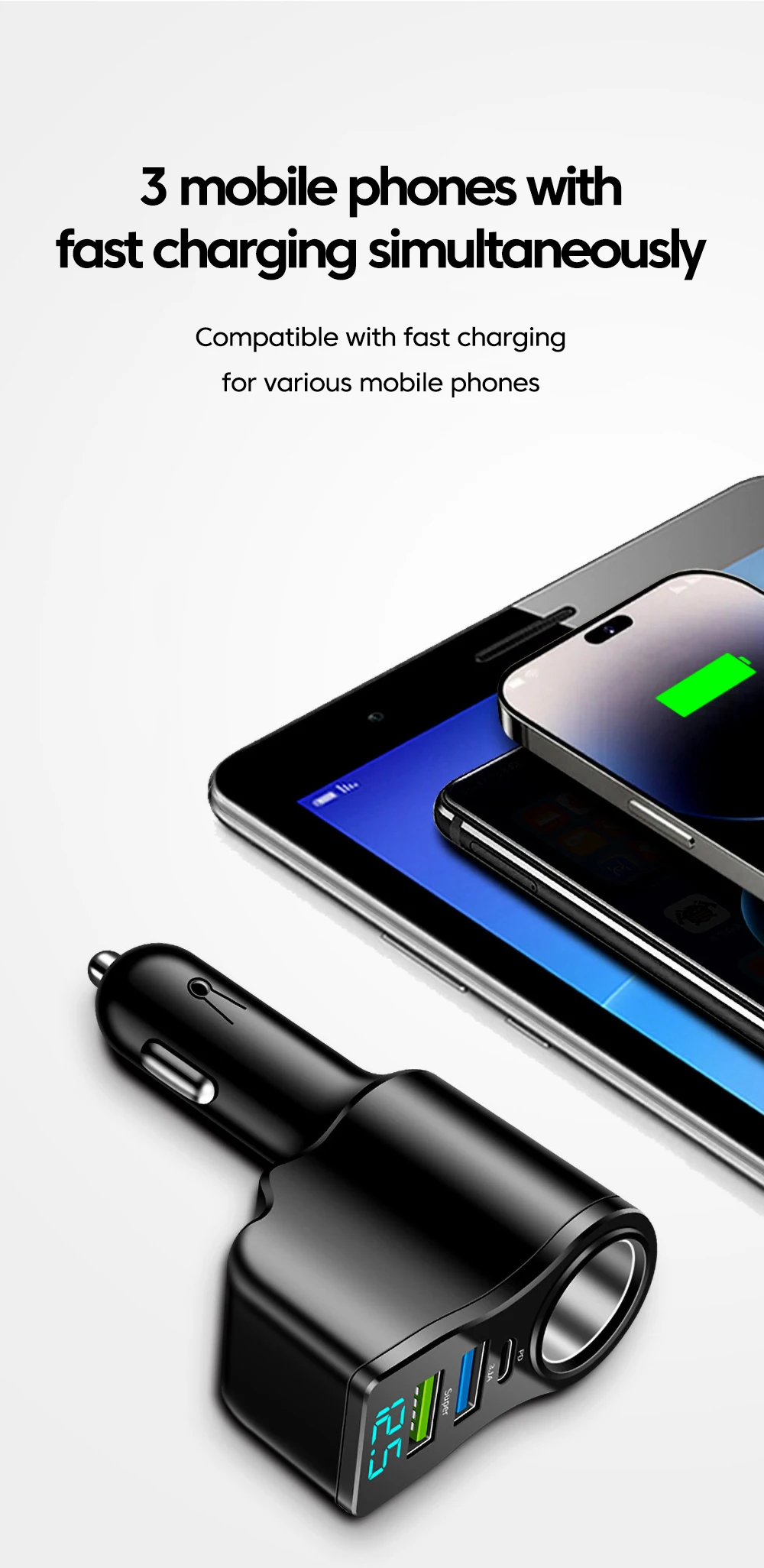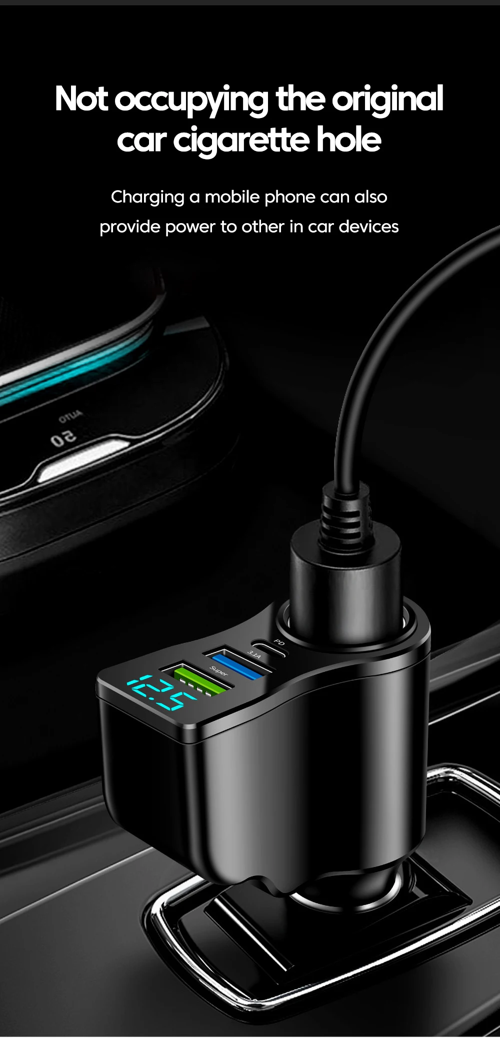 Cargador de coche 4 en 1 de 66W, pantalla Digital LED de carga rápida, adaptador de cargador de teléfono para coche QC3.0 para iphone, samsung, huawei, xiaomi