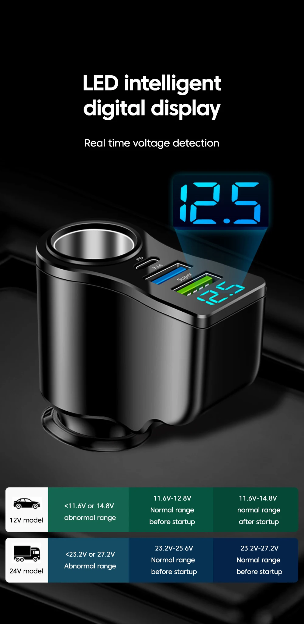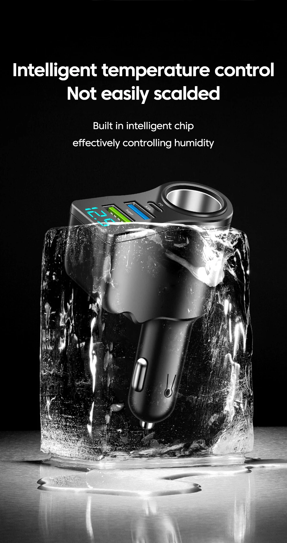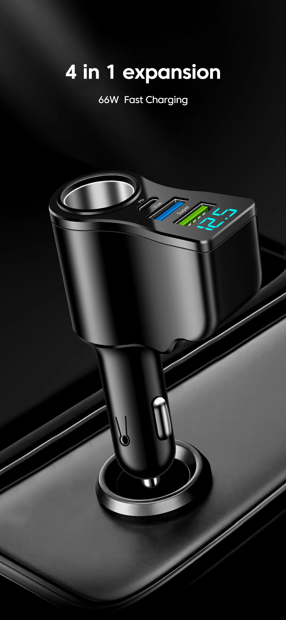Cargador de coche 4 en 1 de 66W, pantalla Digital LED de carga rápida, adaptador de cargador de teléfono para coche QC3.0 para iphone, samsung, huawei, xiaomi